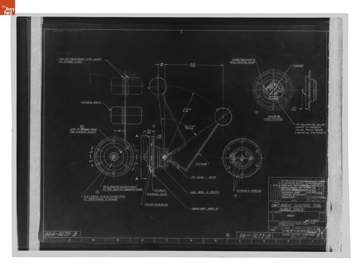 Drawing, "Unit Ass'y - Electric Fuel Gage Tank," Ford Automobile, April 26, 1951