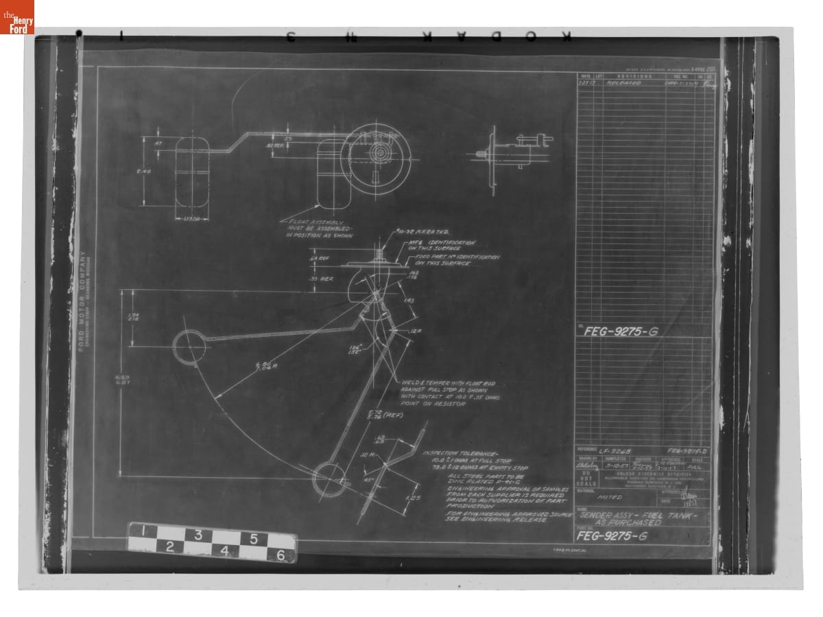 Drawing, "Sender Assy - Fuel Tank - As Purchased," Ford Automobile, March 29, 1957