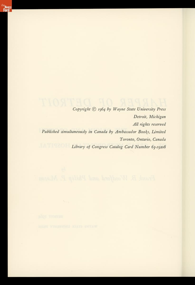Harper of Detroit: The Origin and Growth of a Great Metropolitan Hospital, 1964
