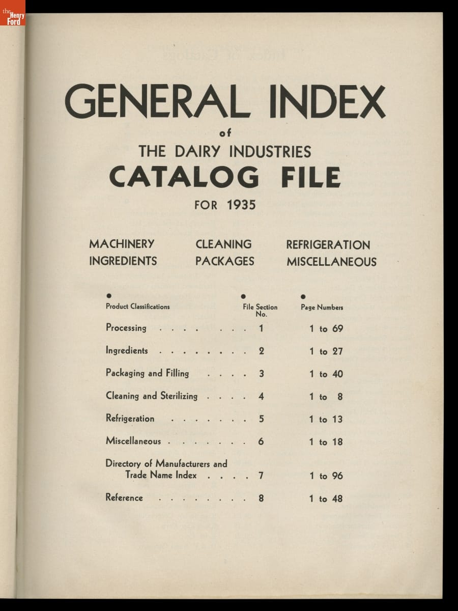 Dairy Industries Catalog File of Equipment, Supplies and Services Used by Dairy Products Manufacturers, 1935