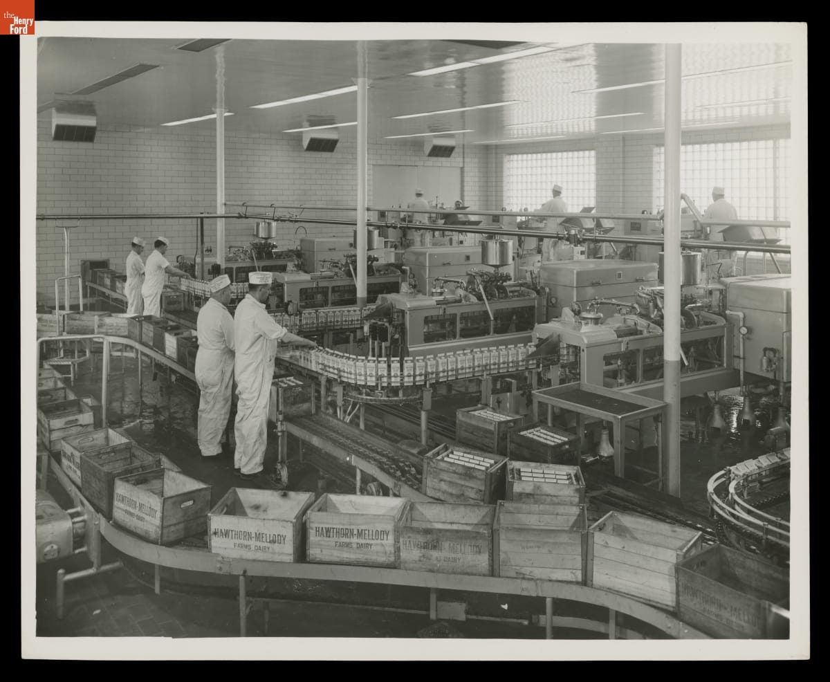 Men Working in Hawthorn-Mellody Farms Dairy Processing Plant, circa 1960