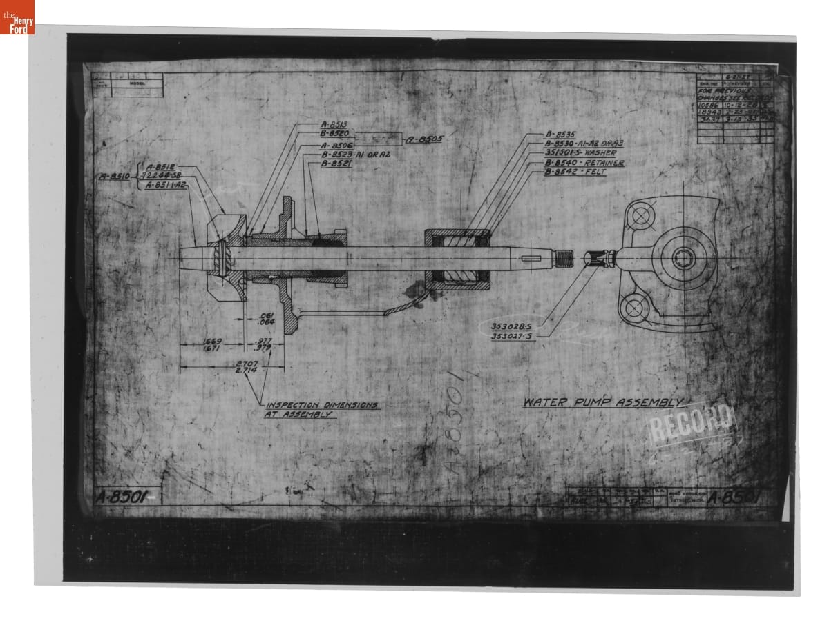 Drawing, "Water Pump Assembly," Ford Model A, March 13, 1935
