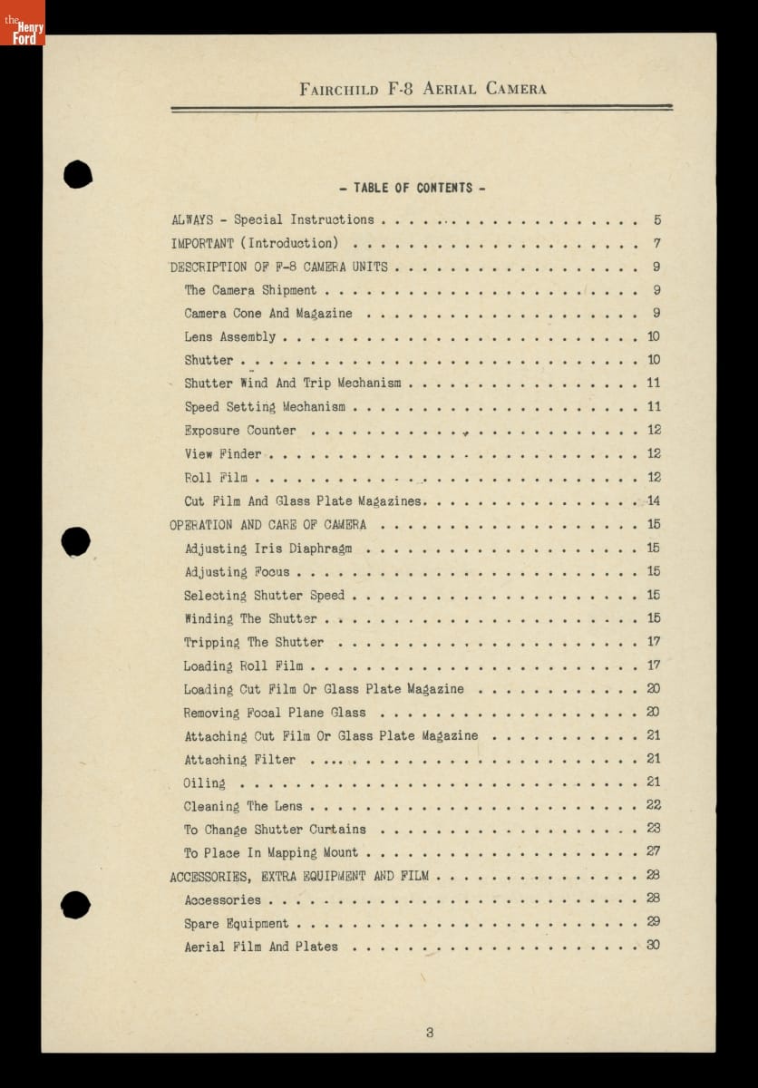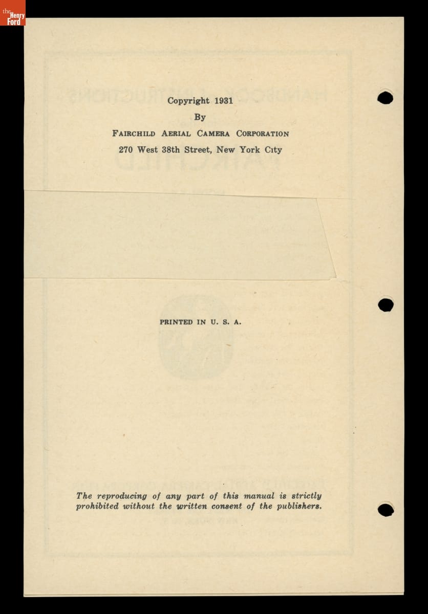 Handbook of Instructions for Fairchild Model F-8 Aerial Camera, 1931