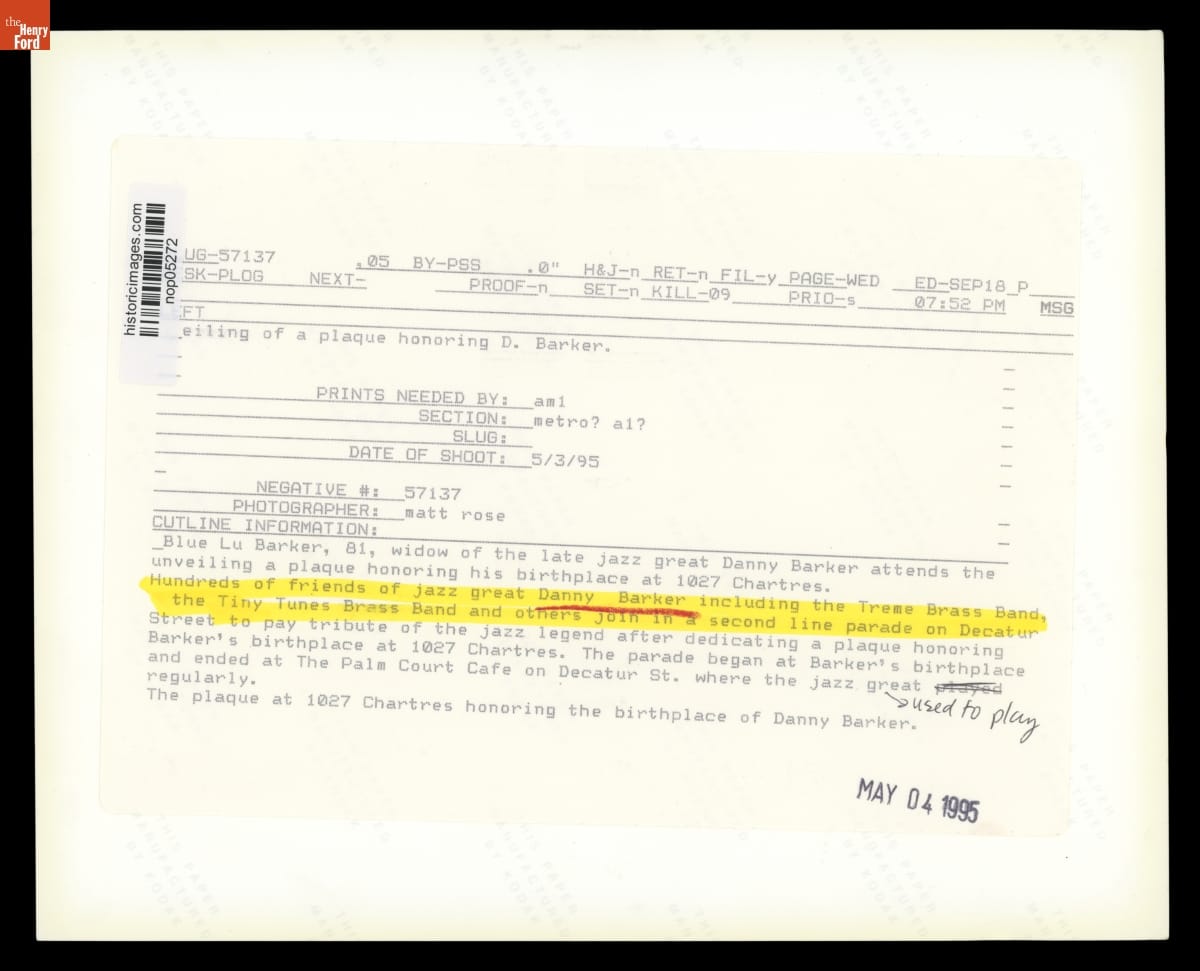 Second Line Funeral Parade Honoring Danny Barker, New Orleans, Louisiana, May 3, 1995