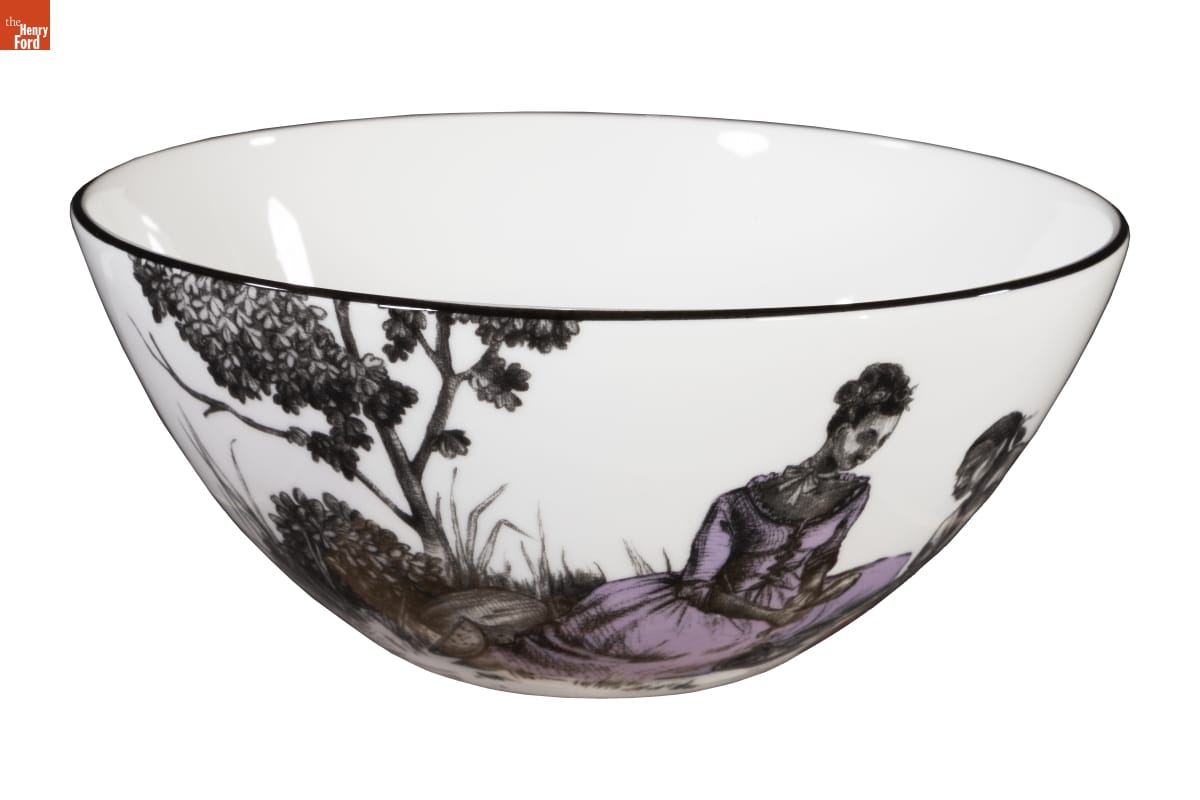 Sheila Bridges' Harlem Toile de Jouy pattern is a singular example of a historical design that has been successfully reimagined and speaks to Americans in the 21st century. Originally designed in 2007, the pattern featuring African Americans engaged in leisurely activities has morphed from a wallpaper design to appearing on a variety of objects, from clothing to dinnerware, both high style and vernacular.