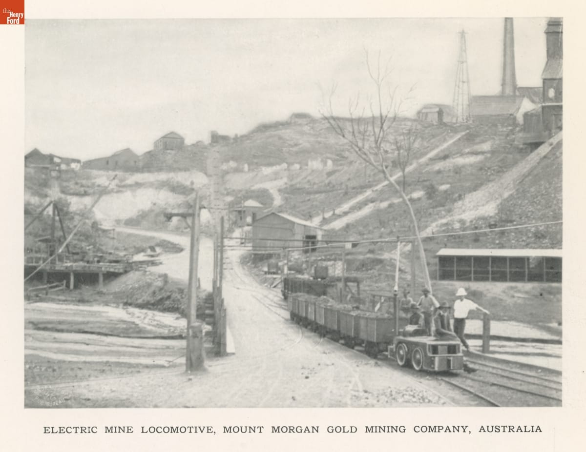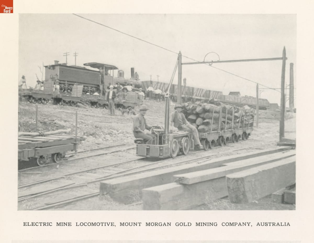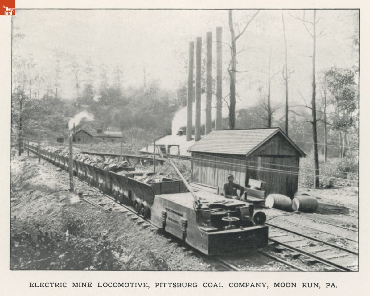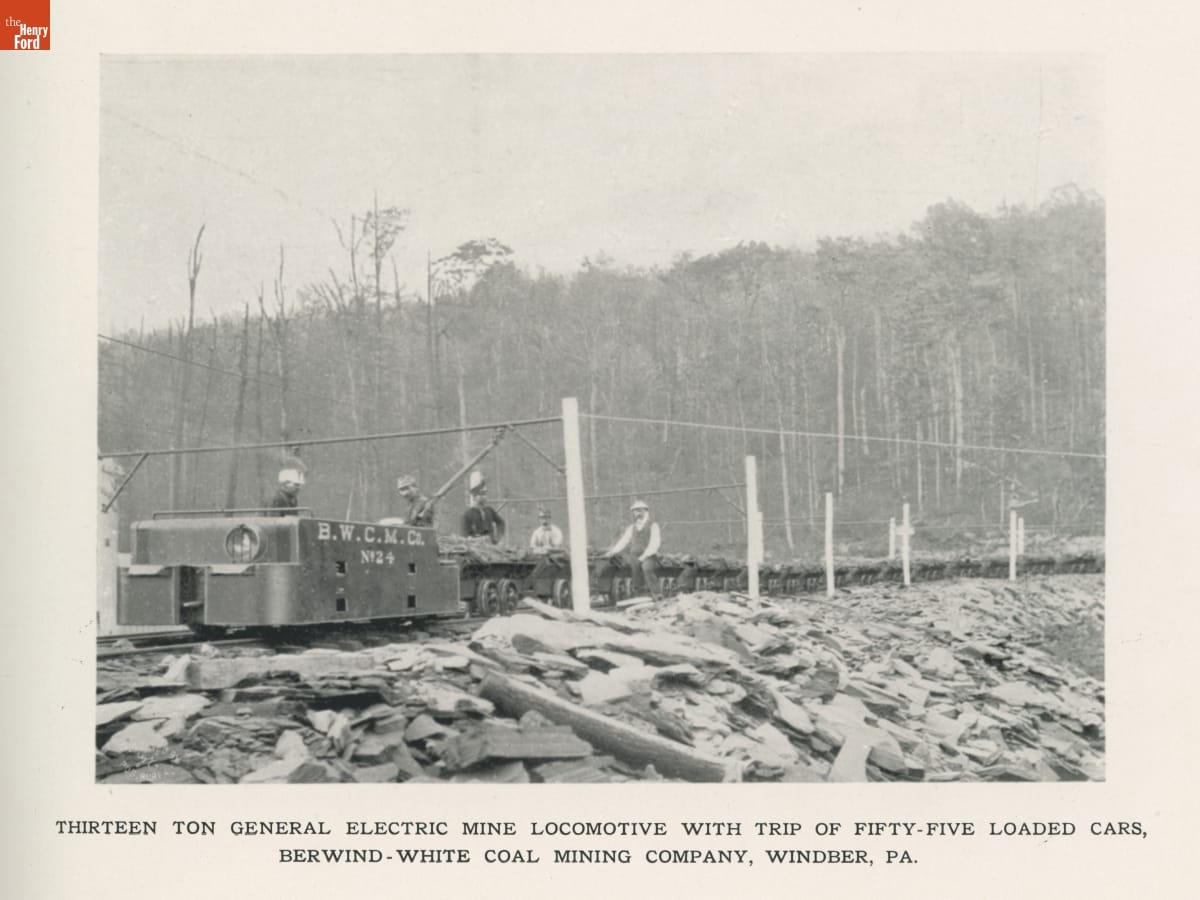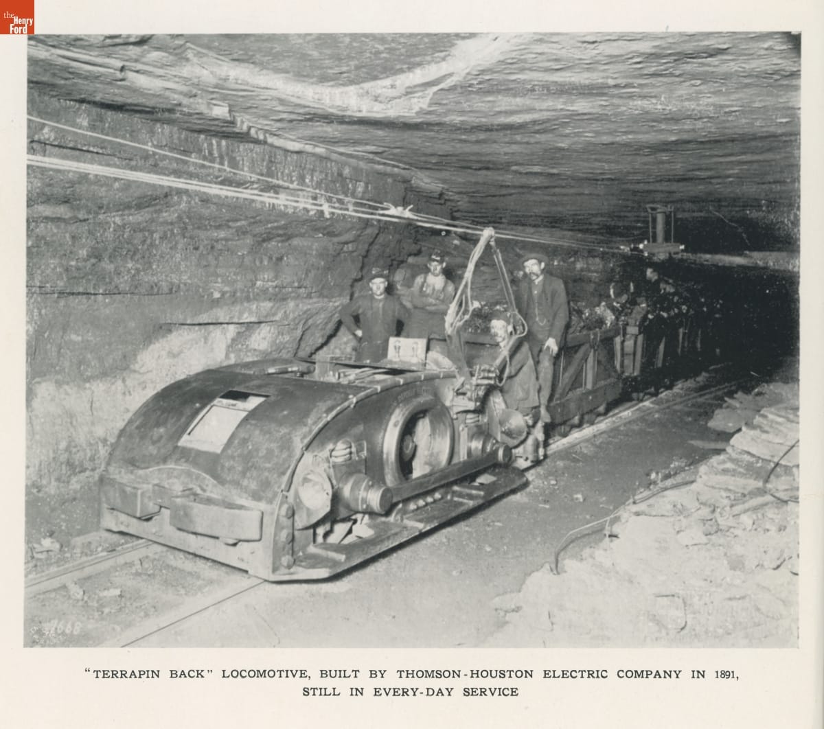 At the turn of the 20th century, General Electric manufactured several models of electric locomotives for use in underground mines -- where smoke and soot from steam locomotives was dangerous and impractical. These small mine locomotives collected electricity from overhead lines or third rails that ran alongside the track. GE also built larger electric locomotives for use with conventional railcars aboveground.
