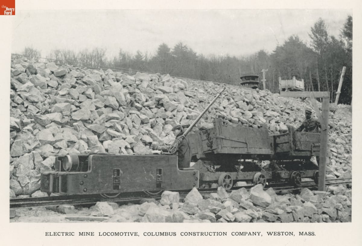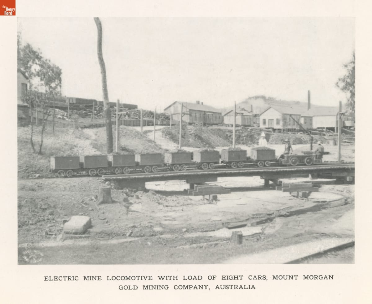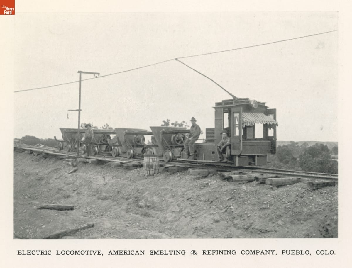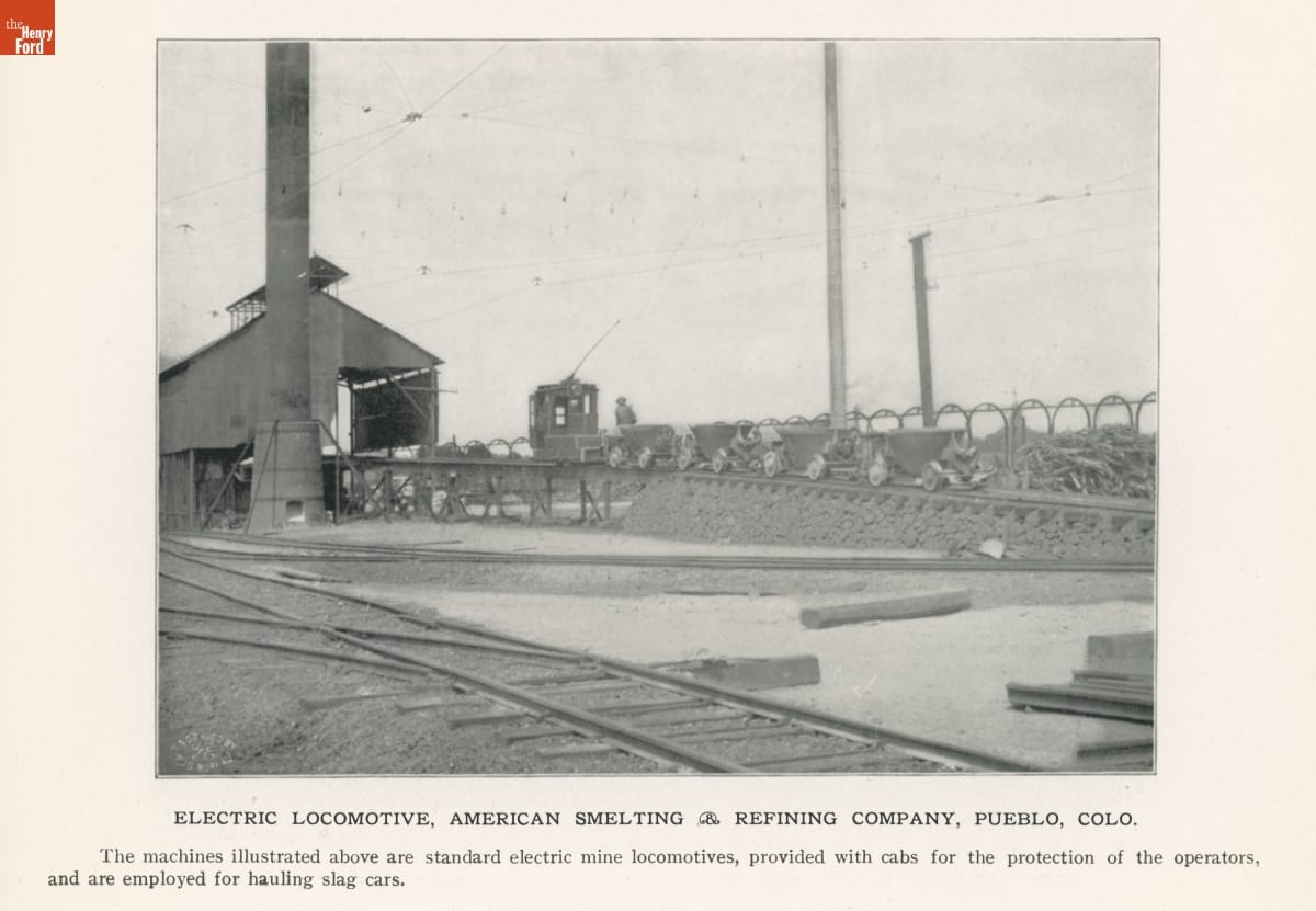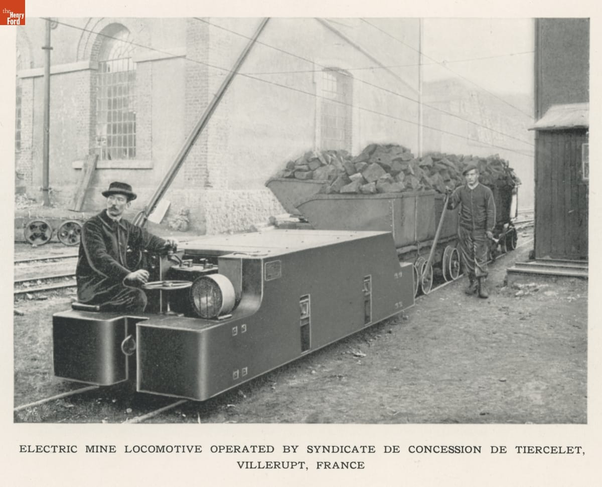 At the turn of the 20th century, General Electric manufactured several models of electric locomotives for use in underground mines -- where smoke and soot from steam locomotives was dangerous and impractical. These small mine locomotives collected electricity from overhead lines or third rails that ran alongside the track. GE also built larger electric locomotives for use with conventional railcars aboveground.