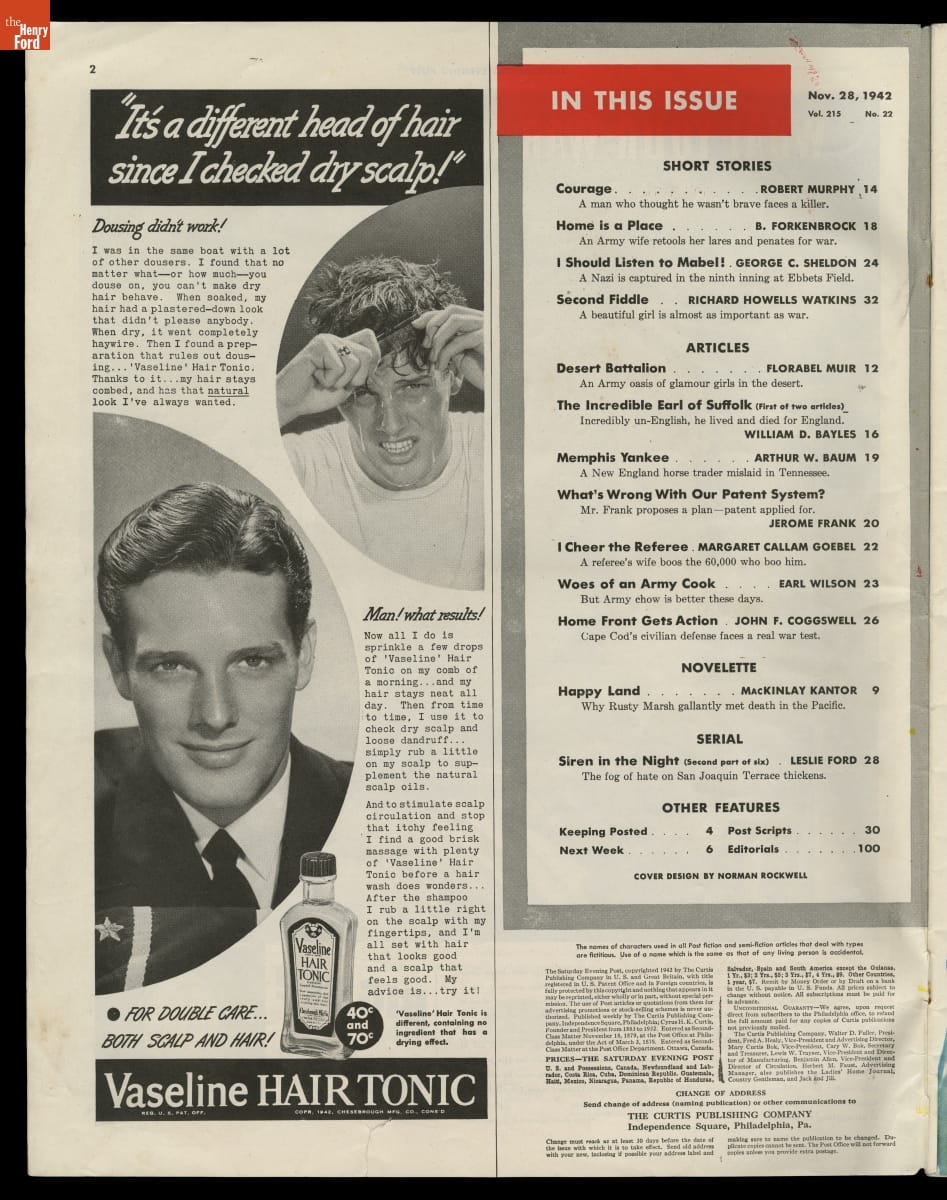 The Saturday Evening Post, first published in 1821 as a four-page weekly newspaper, became one of America's most popular weekly publications by the mid-1900s. The magazine contained news, commentaries, fiction, and general interest articles. But its most distinctive feature was its front cover illustrations by artists such as George Hughes, John Falter, J.C. Leyendecker, and Norman Rockwell.