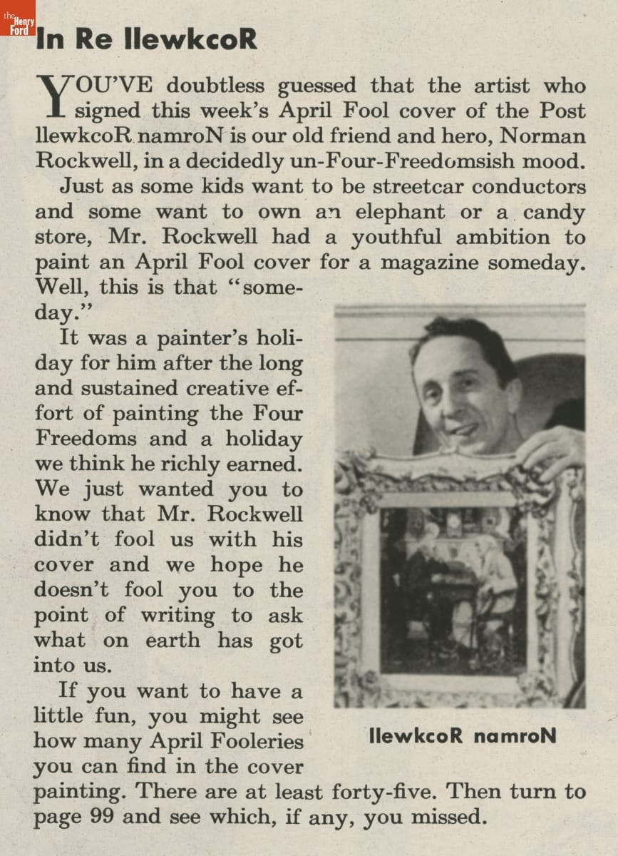 The Saturday Evening Post, first published in 1821 as a four-page weekly newspaper, became one of America's most popular weekly publications by the mid-1900s. The magazine contained news, commentaries, fiction, and general interest articles. But its most distinctive feature was its front cover illustrations by artists such as George Hughes, John Falter, J.C. Leyendecker, and Norman Rockwell.