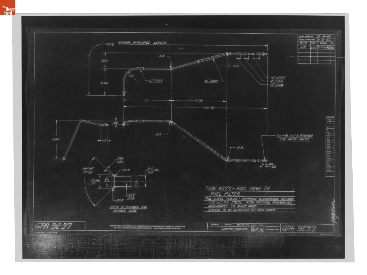 Drawing, "Tube Ass'y. - Fuel Tank to Fuel Filter," Ford GPA, August 21, 1942