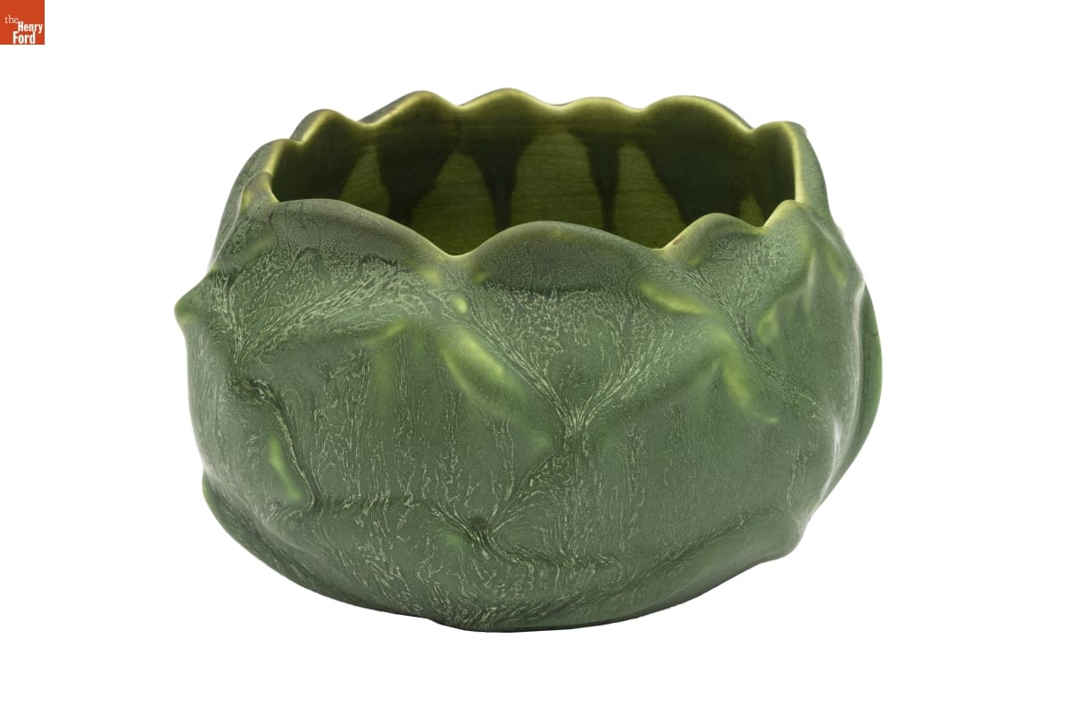Cadman Robertson joined Hampshire Pottery in 1904 and began developing decorative household items covered with an attractive thick brown, red, blue, or green glaze. The Keene, New Hampshire, company continued to produce similar wares for a few years after Robertson's sudden death in 1914. The company was sold in 1917 and focused on making commercial China for restaurants and hotels. The factory closed in 1923.