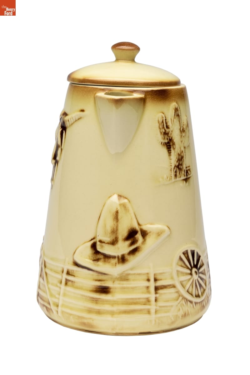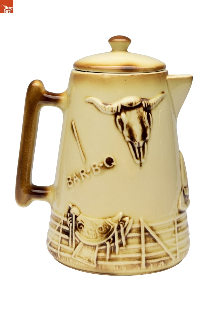 The Nelson McCoy Pottery Company, established in 1910 in Roseville, Ohio, began producing earthenware specialties and artware in the mid-1920s along with its stoneware lines. Its pottery appealed to a middle-class audience seeking the broadest popular taste. In 1960, McCoy introduced its El Rancho Bar-B-Q line. The line consisted of western-themed, large service pieces and tapped into the romanticism of the American West.