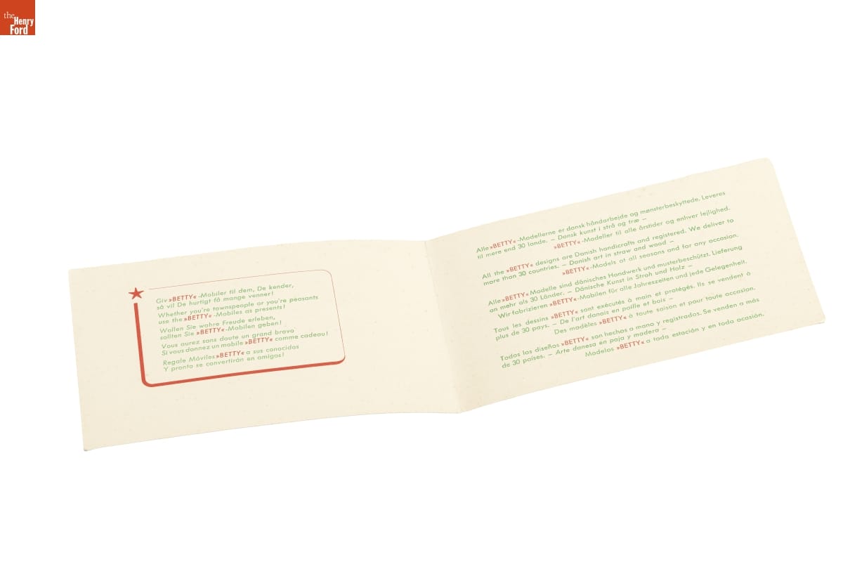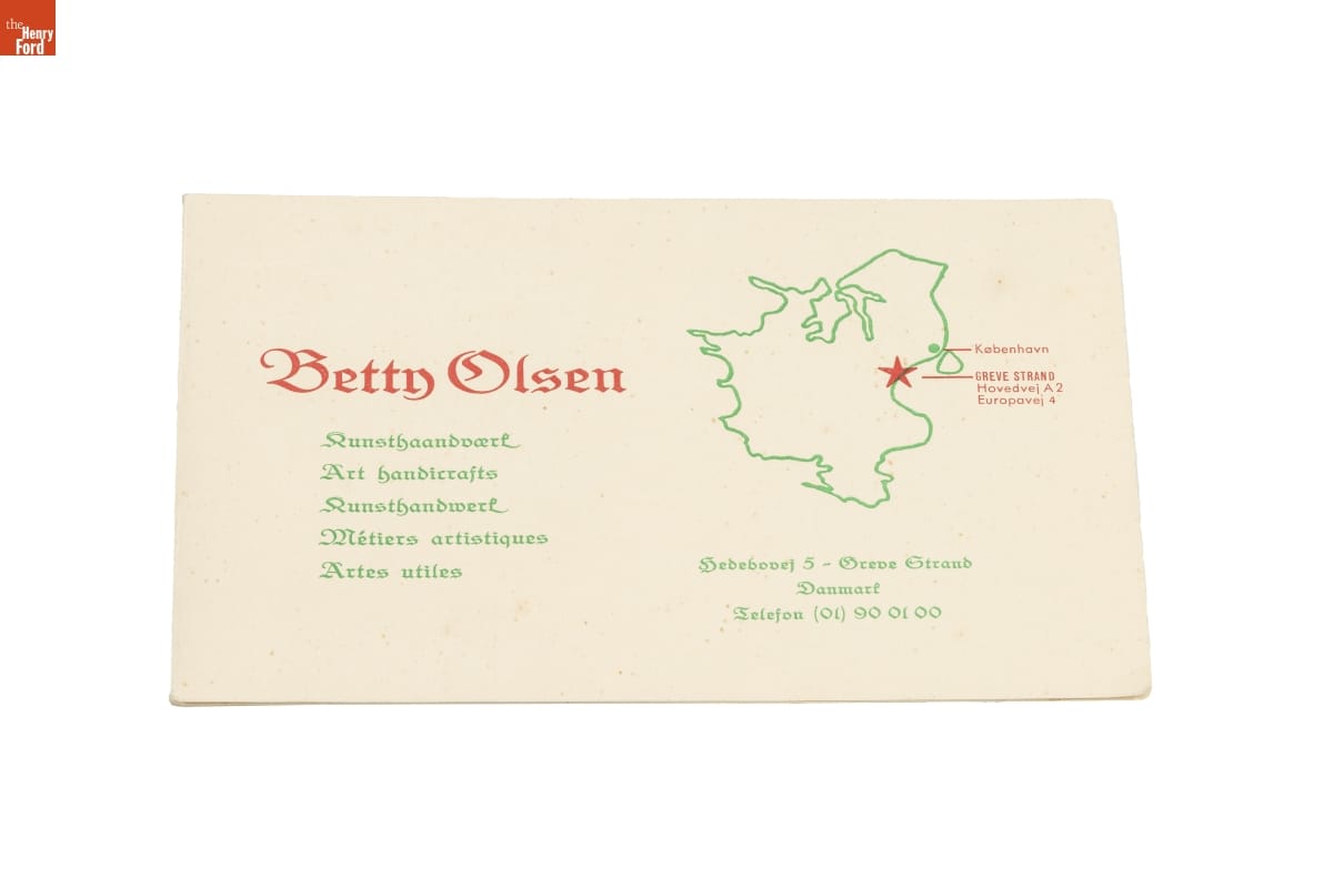 Made by Betty Olsen of Denmark. Retailed by Adler-Schnee Associates of Detroit, Michigan.