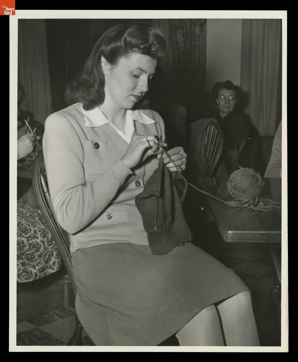 Employees Knitting Garments for the War Effort during Lunchtime at the Ford Motor Company Rouge Plant, October 1942