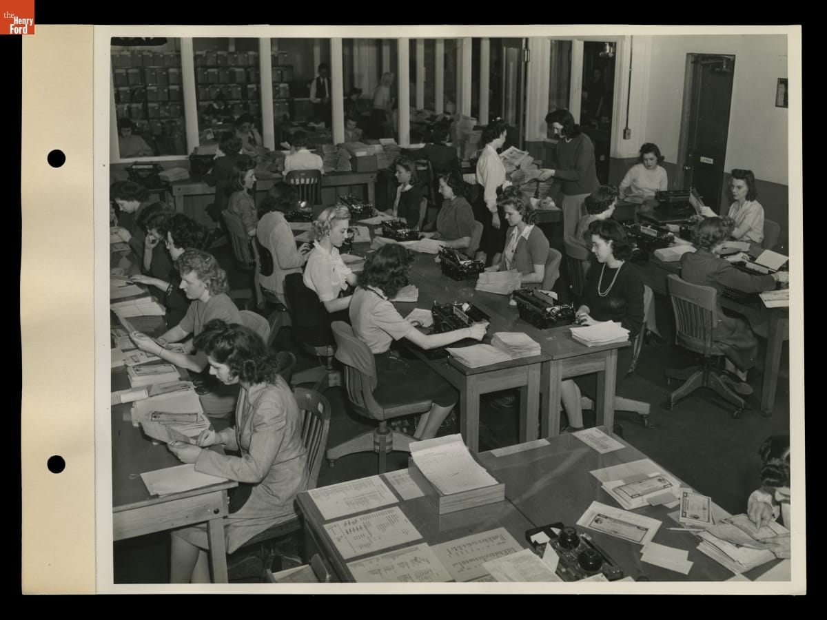 Employees in Ford Motor Company Rouge Plant Pay Office Handling and Mailing War Bonds, December 1943