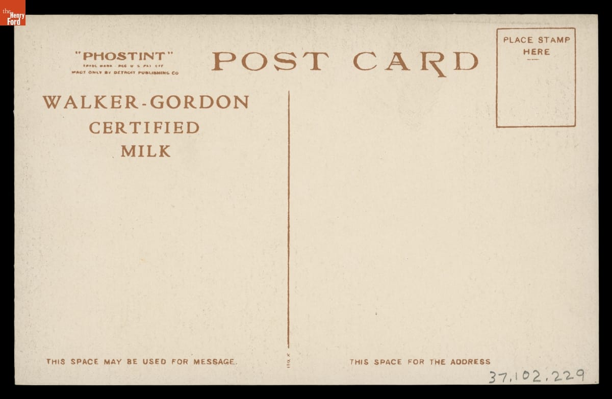 The Detroit Creamery Milk Farm produced milk for the Detroit area from 1910 until 1929. At its peak, it was the second largest milk farm in the country, with 2,300 acres and over 900 cattle. Their milk was certified by the Walker-Gordon milk laboratory, demonstrating its safety and purity. Souvenir postcards showcased the modern cleanliness of the Clinton Township farm.