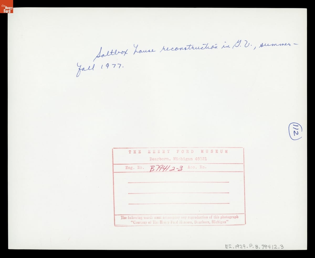 Constructing Daggett Farmhouse in Greenfield Village, October 1977
