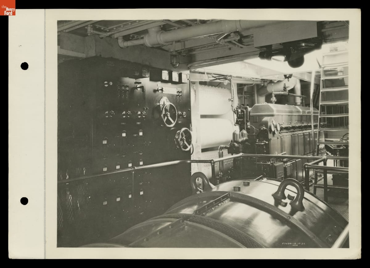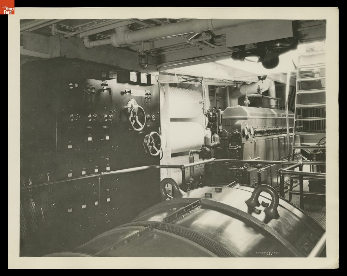 Engine Room on Ford Motor Company Tugboat "Dearborn," August 1932