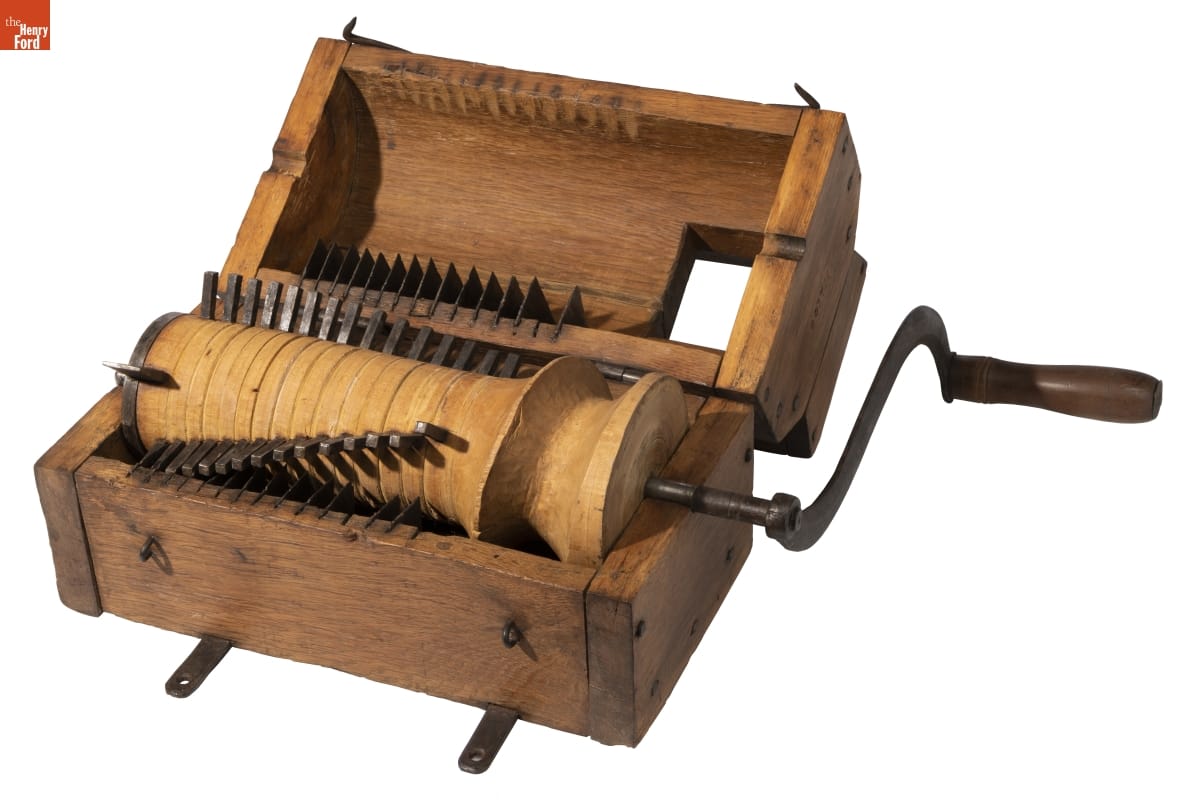 By the mid-1800s, Americans could use grinders instead of mincing knives to cut, chop, and prepare meat for cooking. Grinders like this one saved time and made food processing more efficient.