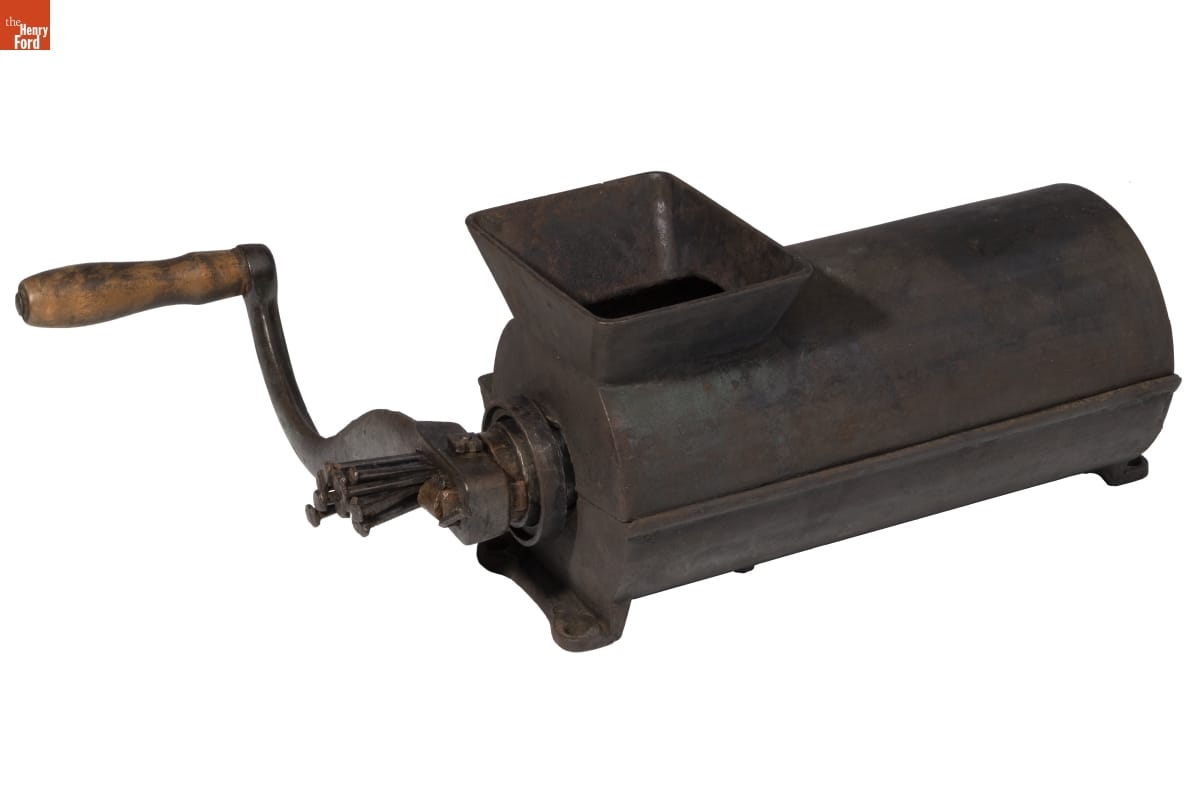 Grinding corn into flour became a booming American industry by the late eighteenth century. For decades before gristmills, however, farmers ground corn into flour at home using a corn grinder like this one.