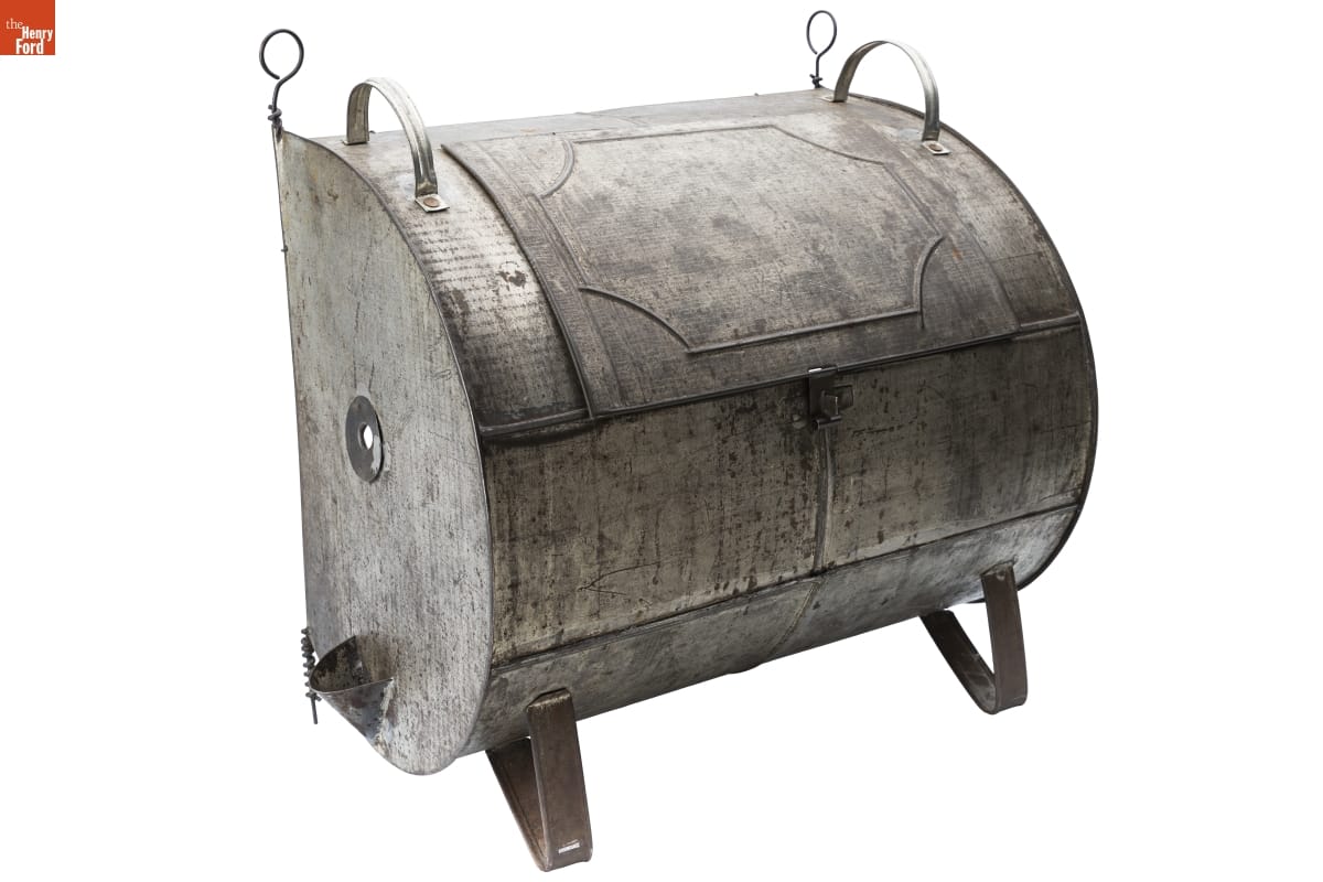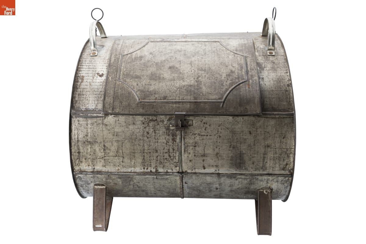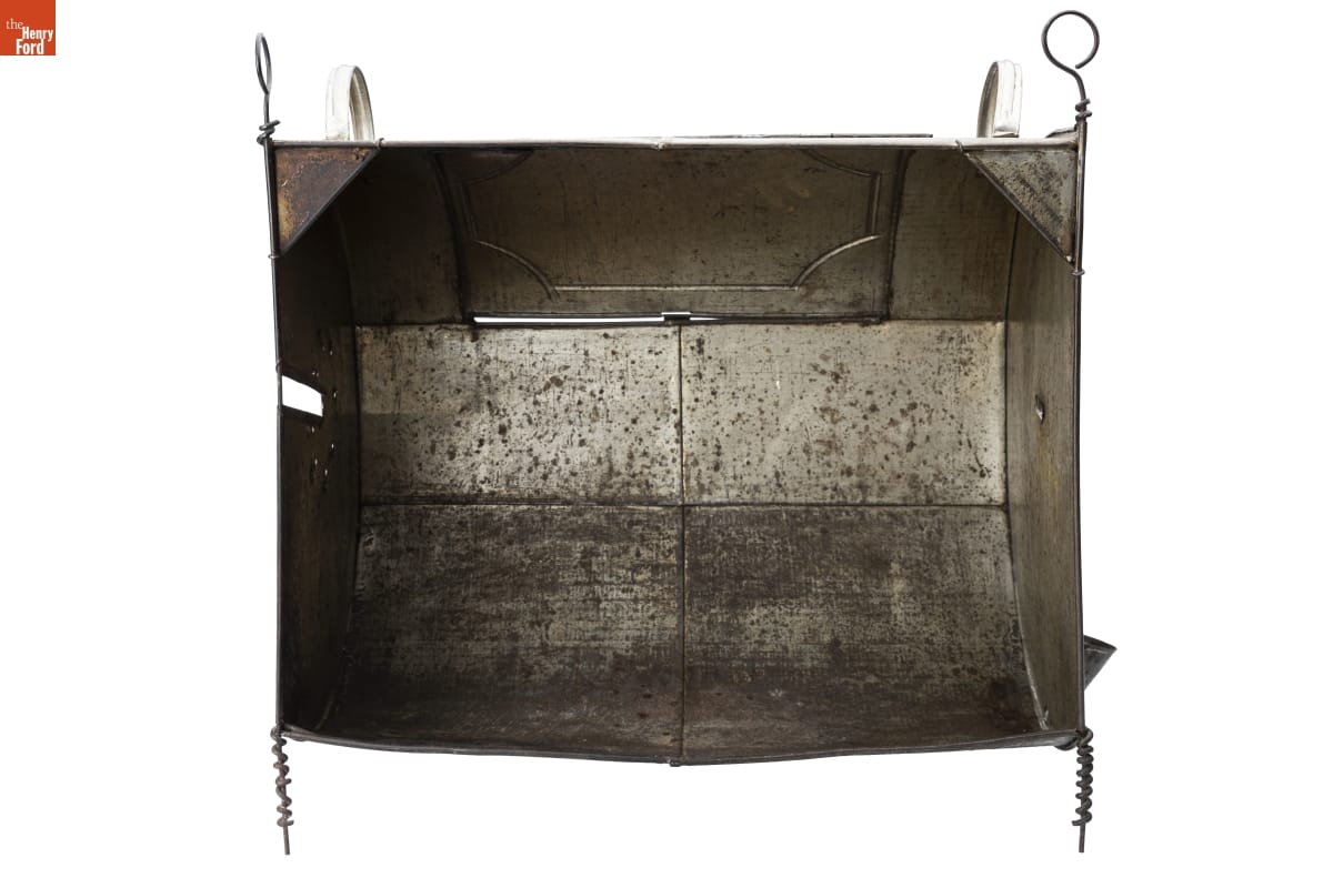 Tin-plated iron, commonly called "tin," was the dominant material for utilitarian items in 19th-century America. Local tinsmiths produced an almost endless range of goods. But as more durable and lower maintenance materials emerged, handmade tinware came to be considered a folk art or heritage craft. This 20th-century example was produced in the Greenfield Village tin shop using historical tinsmithing tools and techniques.