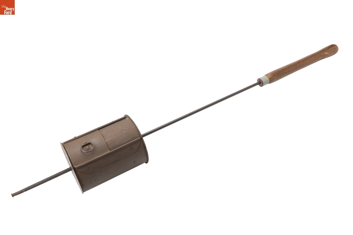 Tin-plated iron, commonly called "tin," was the dominant material for utilitarian items in 19th-century America. Local tinsmiths produced an almost endless range of goods. But as more durable and lower maintenance materials emerged, handmade tinware came to be considered a folk art or heritage craft. This 20th-century example was produced in the Greenfield Village tin shop using historical tinsmithing tools and techniques.