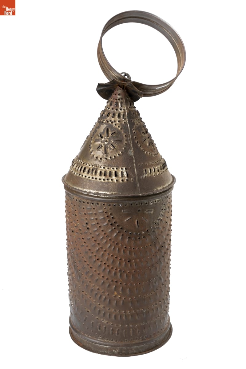 Tin-plated iron, commonly called "tin," was the dominant material for utilitarian items in 19th-century America. Local tinsmiths produced an almost endless range of goods. But as more durable and lower maintenance materials emerged, handmade tinware came to be considered a folk art or heritage craft. This 20th-century example was produced in the Greenfield Village tin shop using historical tinsmithing tools and techniques.