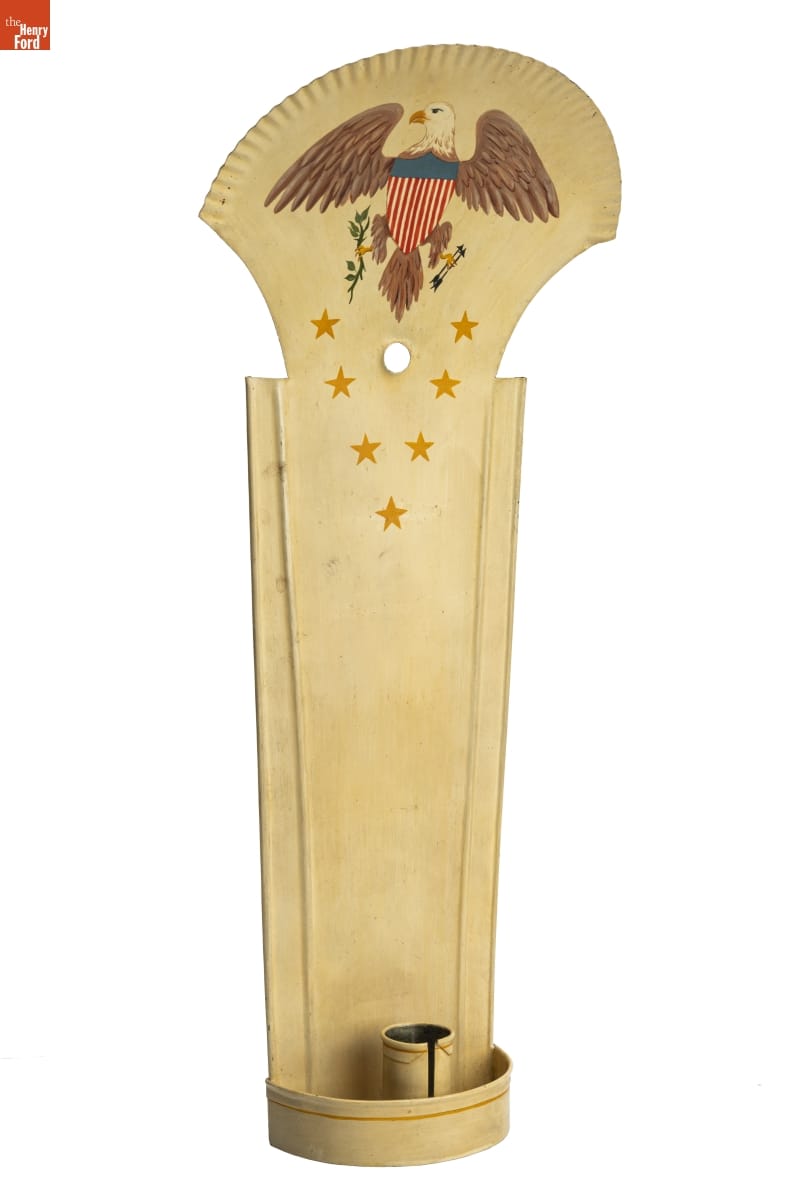 Tin-plated iron, commonly called "tin," was the dominant material for utilitarian items in 19th-century America. Local tinsmiths produced an almost endless range of goods. But as more durable and lower maintenance materials emerged, handmade tinware came to be considered a folk art or heritage craft. This 20th-century example was produced in the Greenfield Village tin shop using historical tinsmithing tools and techniques.