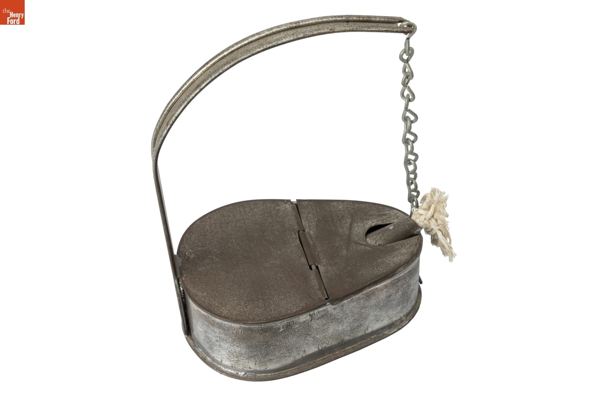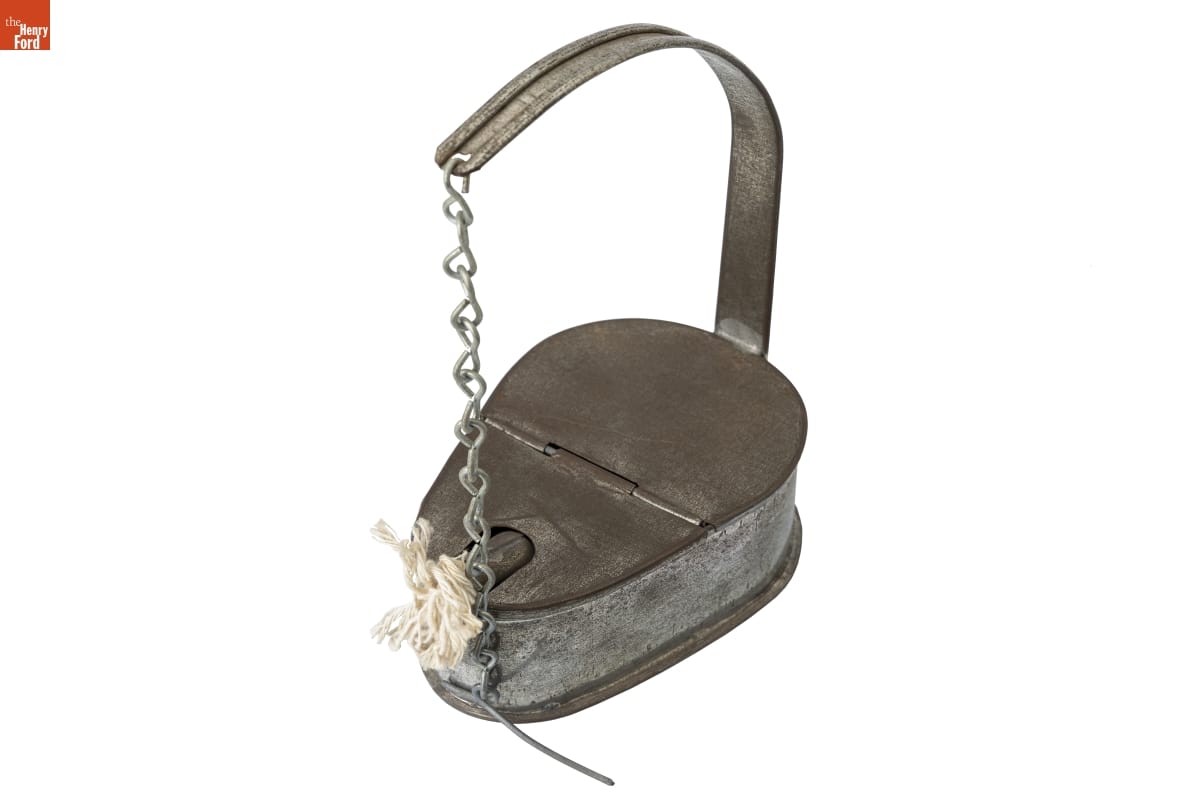 Tin-plated iron, commonly called "tin," was the dominant material for utilitarian items in 19th-century America. Local tinsmiths produced an almost endless range of goods. But as more durable and lower maintenance materials emerged, handmade tinware came to be considered a folk art or heritage craft. This 20th-century example was produced in the Greenfield Village tin shop using historical tinsmithing tools and techniques.