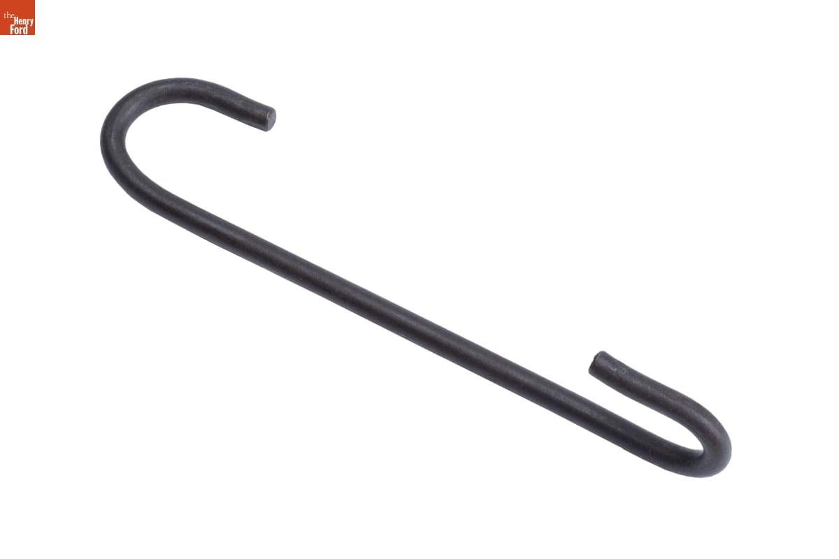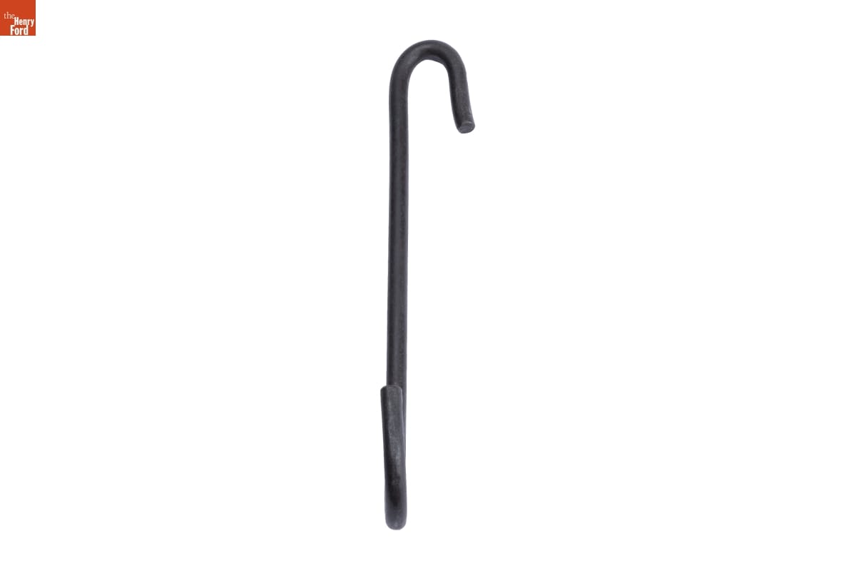 Pothooks like this one made cooking over a fire safe and more practical for homemakers in the 19th century. One end hooks onto the handle of the cooking pot, while the other suspends from a movable crane, positioning the pot safely over the fire.