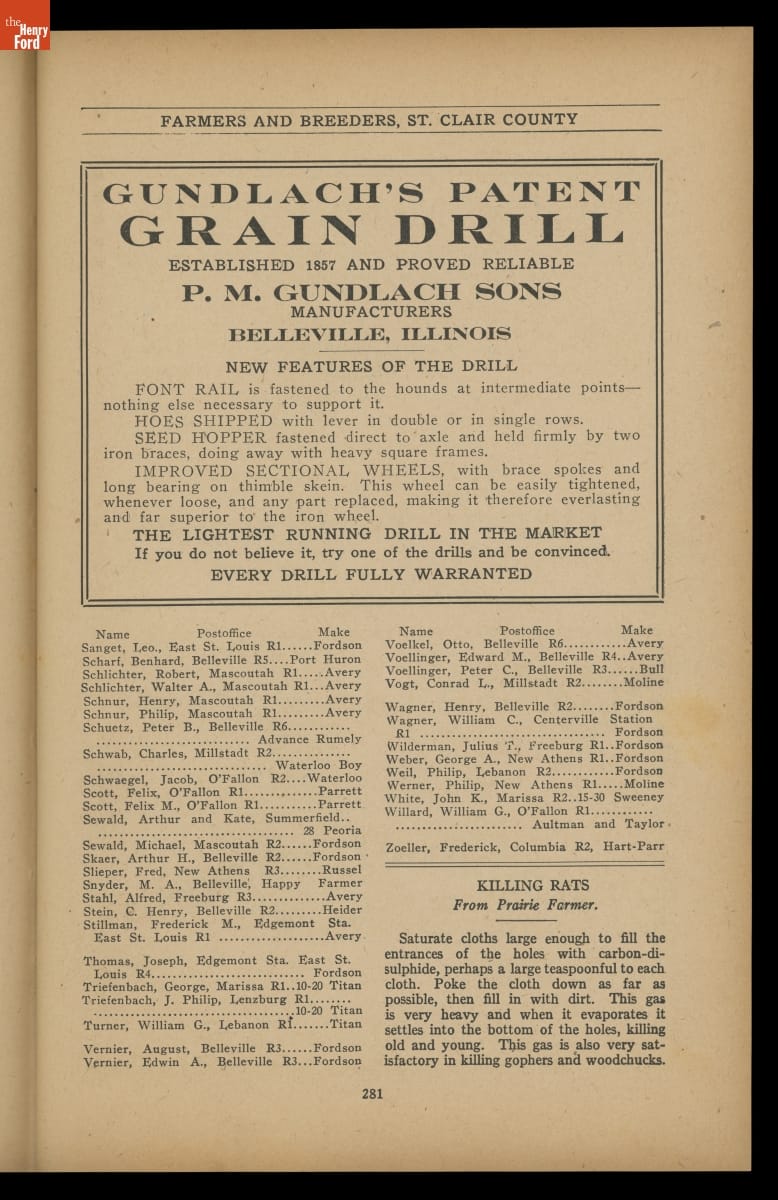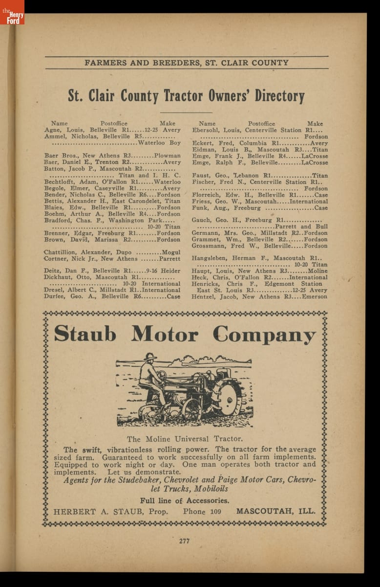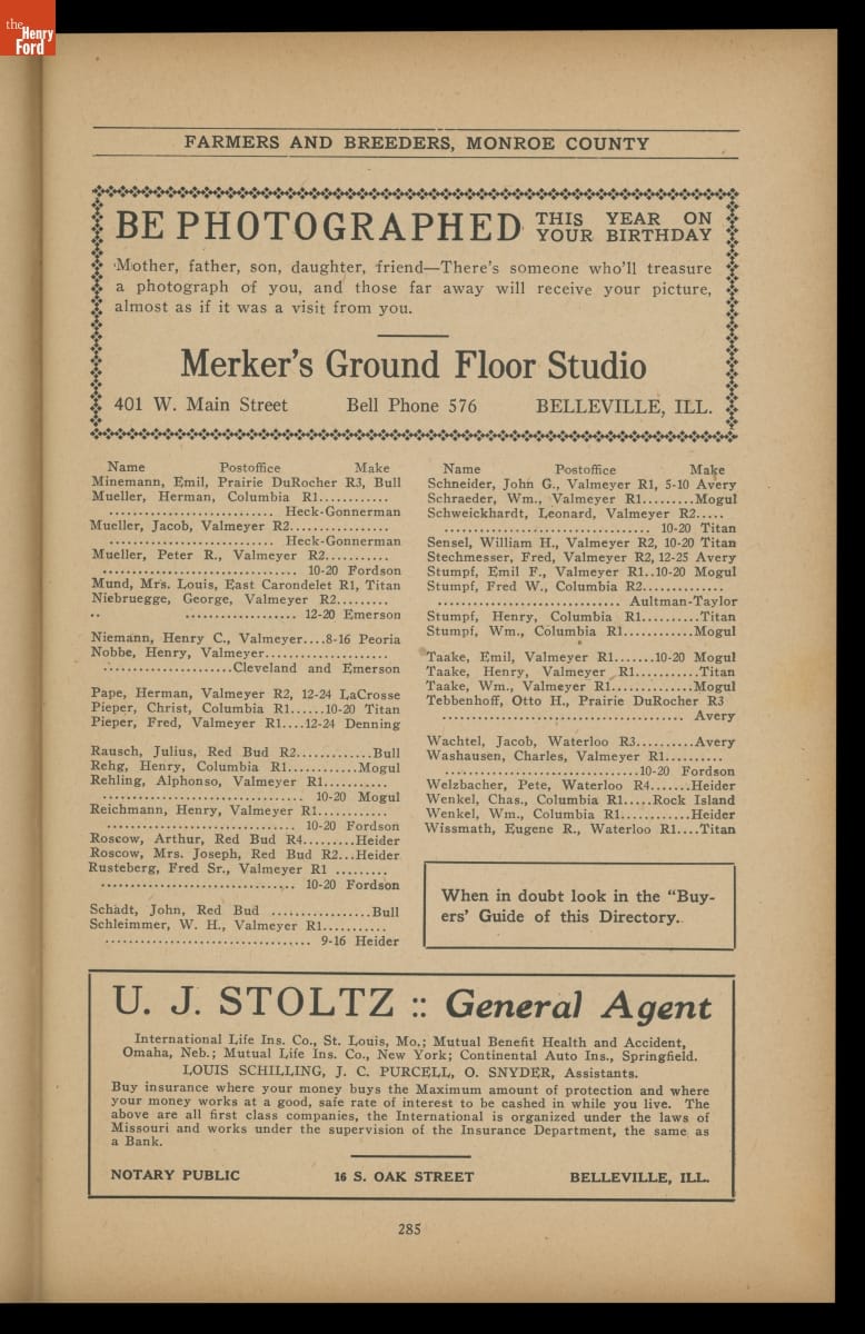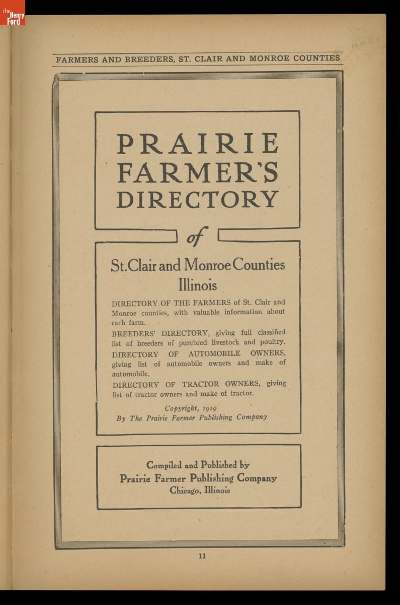 Prairie Farmer's Reliable Directory of Farmers and Breeders: St. Clair and Monroe Counties, Illinois, 1919