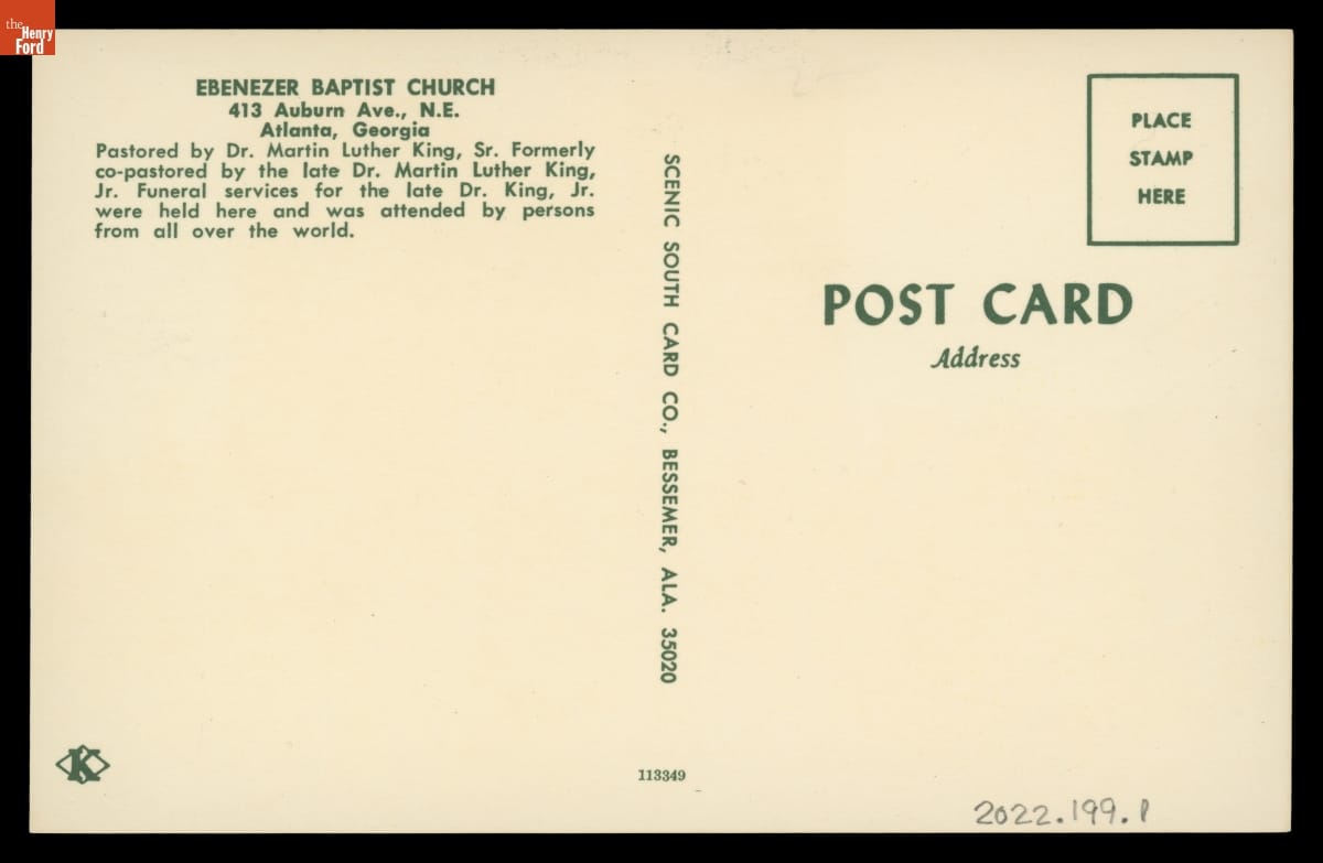 Dr. Martin Luther King, Jr., grew up steeped in the Christian gospel at the Ebenezer Baptist Church in Atlanta, Georgia. His maternal grandfather and his father had preached here. King was ordained as a minister here and co-pastored with his father from 1960 until his assassination in 1968. It was at Ebenezer that he realized that his rich, impassioned voice could deeply move people.
