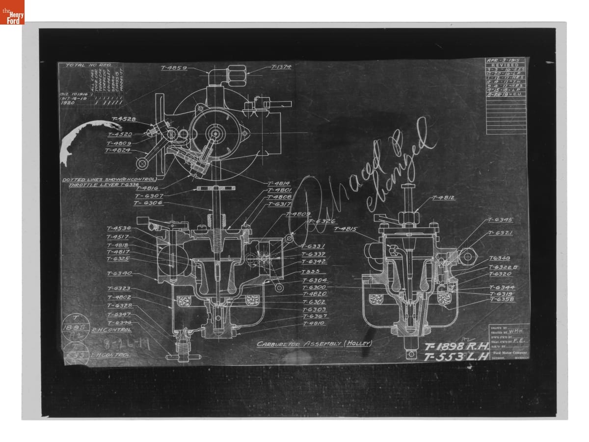Drawing, "Carburetor Assembly (Holley)," Ford Model T, August 26, 1919