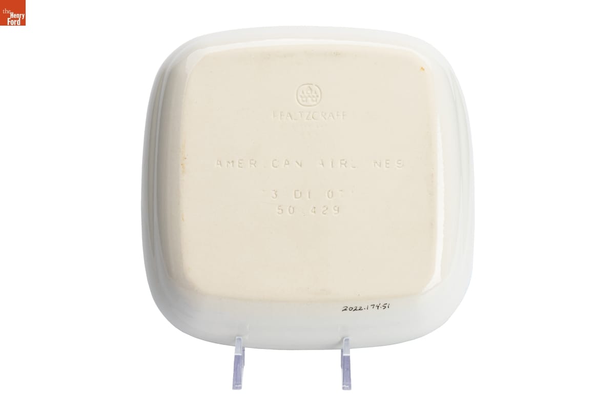 Original design by Katsuji Wakisaka for textiles made by Marimekko Oy in Helsinki Finland. Plate manufactured by Pfaltzgraff Co. in the United States for American Airlines.