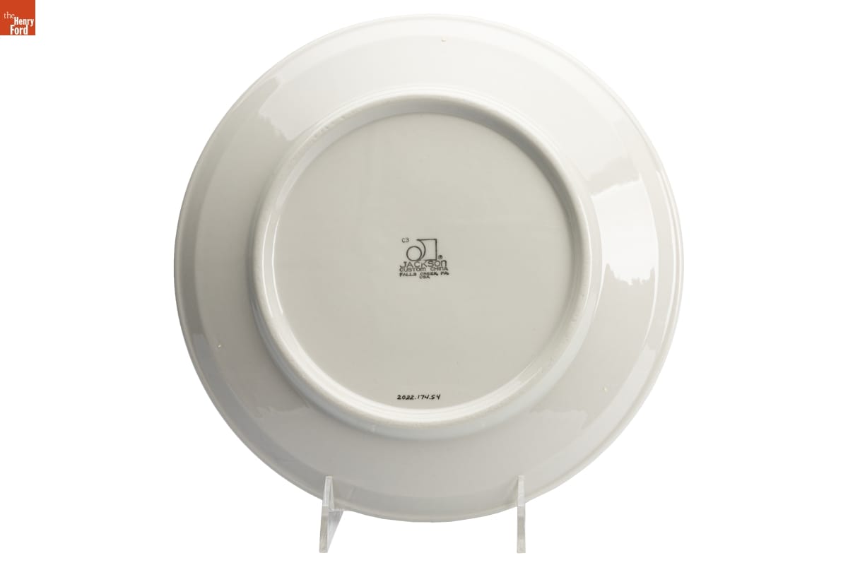 Henry Jackson founded the Jackson Vitrified China Company in the 1910s in Falls Creek, Pennsylvania. The company sold dinnerware and restaurant china for nearly 75 years. Paul McCobb (1917-1969), a well-known mid-century designer, created distinctive shapes and decorations for the company starting in the 1950s. The company reproduced his patterns for years after his death.