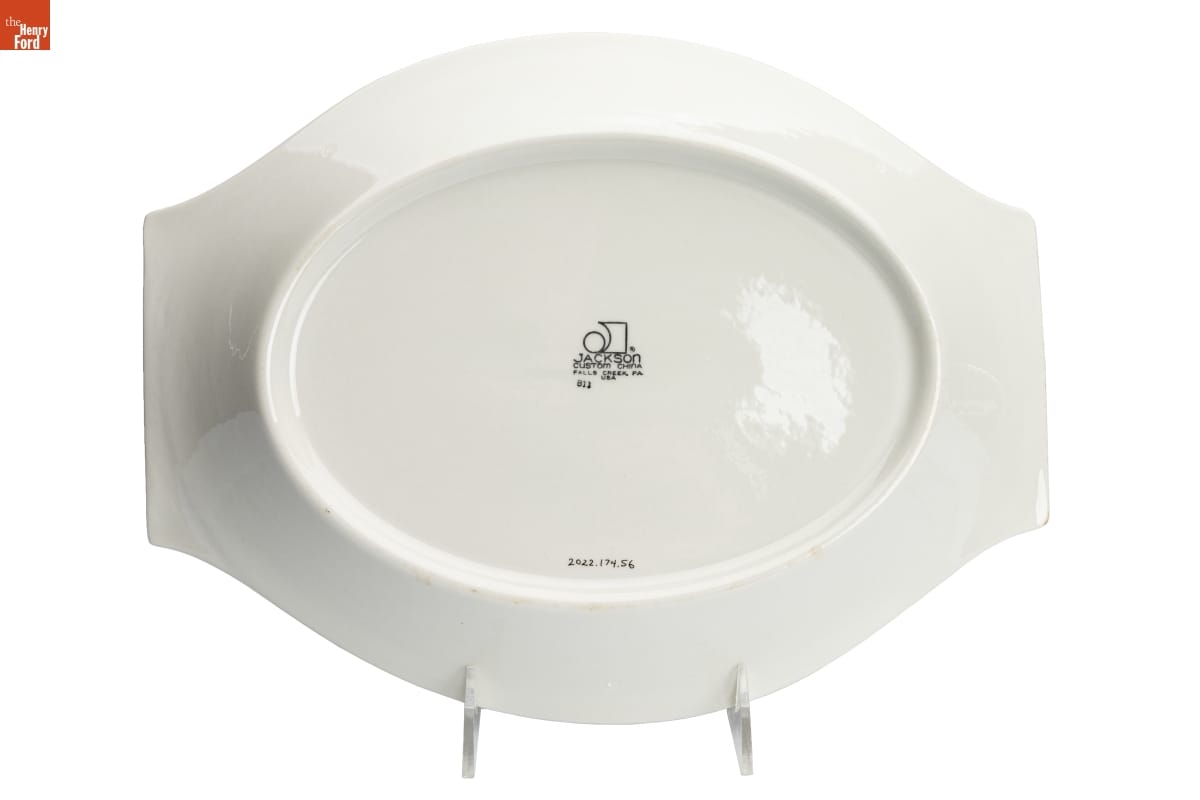 Henry Jackson founded the Jackson Vitrified China Company in the 1910s in Falls Creek, Pennsylvania. The company sold dinnerware and restaurant china for nearly 75 years. Paul McCobb (1917-1969), a well-known mid-century designer, created distinctive shapes and decorations for the company starting in the 1950s. The company reproduced his patterns for years after his death.