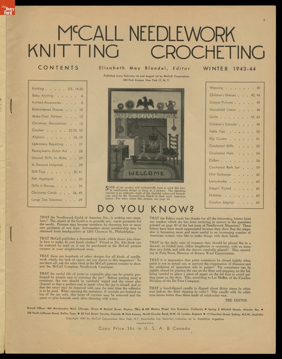 McCall Needlework, Knitting, Crocheting, Winter 1943-44