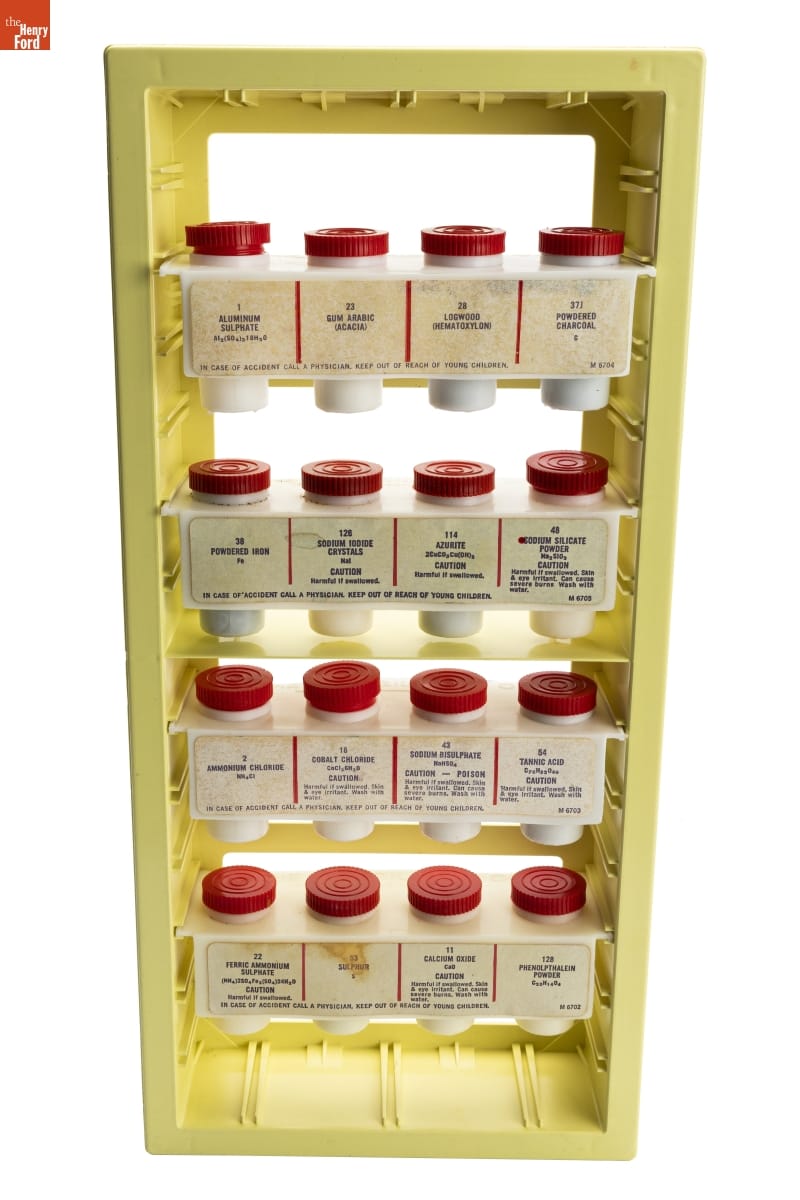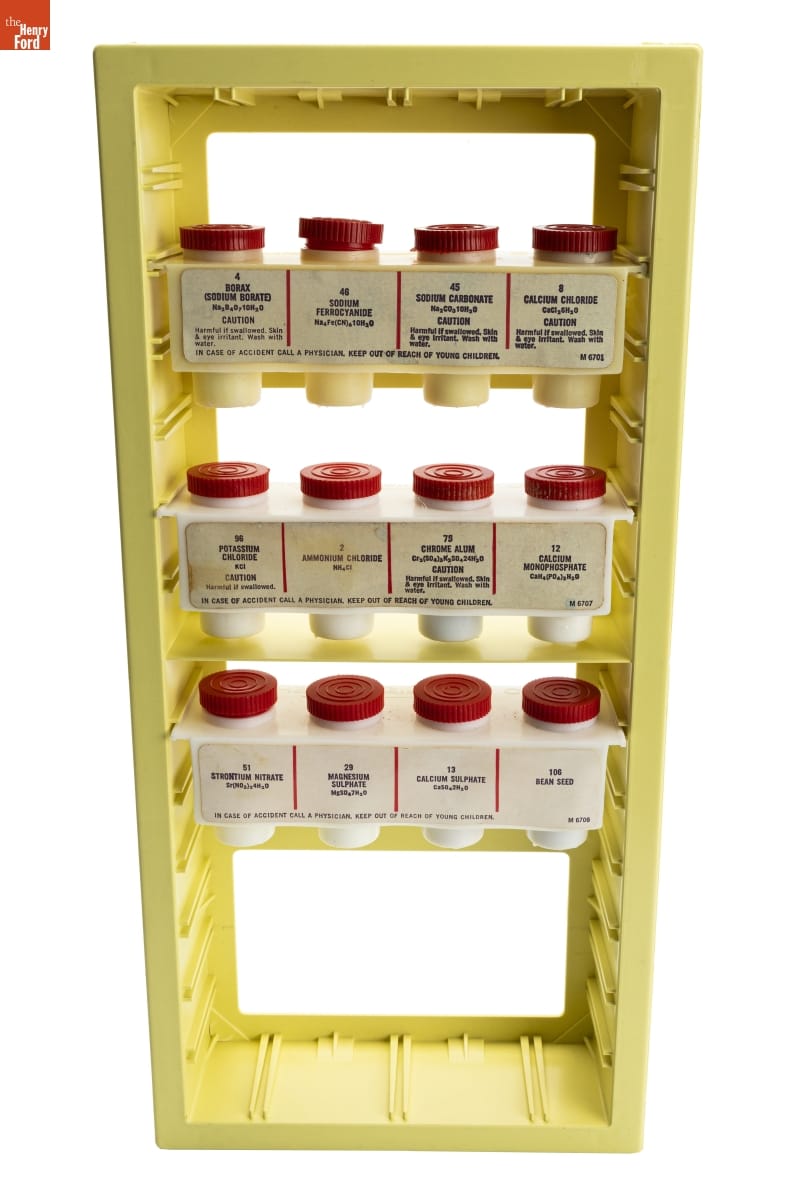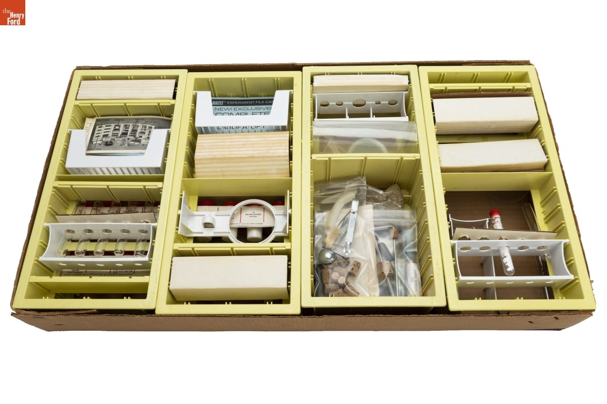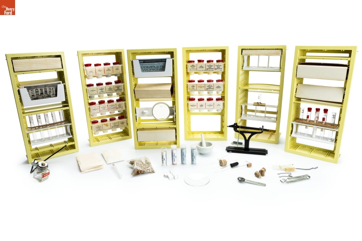 GILBERT CHEMLAB 4 / COMPLETE HOME WORKING LABORATORY 12306 / SAFETY / TESTED / 29 / CHEMICALS / 6 STORAGE LAB RACKS / 700 EXPERIMENTS / 2 TEST TUBE RACKS METRIC SCALE / HYDROPONICS TANK MORTAR & PESTLE / ALCOHOL LAMP EQUIPMENT RACKS / WARNING: This set contains chemicals that may be harmful / if misused. Read cautions on individual containers carefully. Not / to be used by children except under adult supervision.