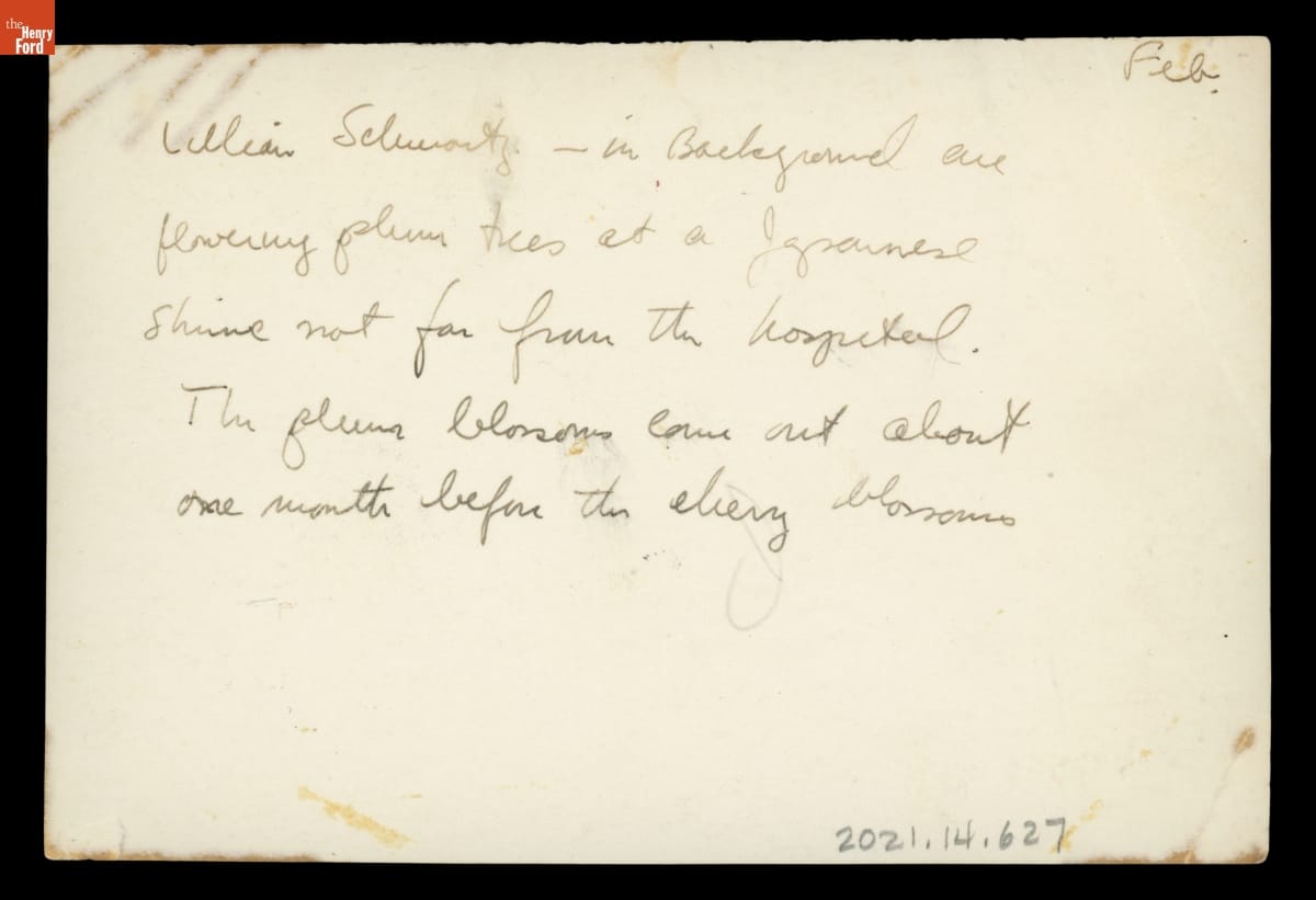 Lillian Schwartz with a Flowering Plum Tree in Japan, 1948-1950