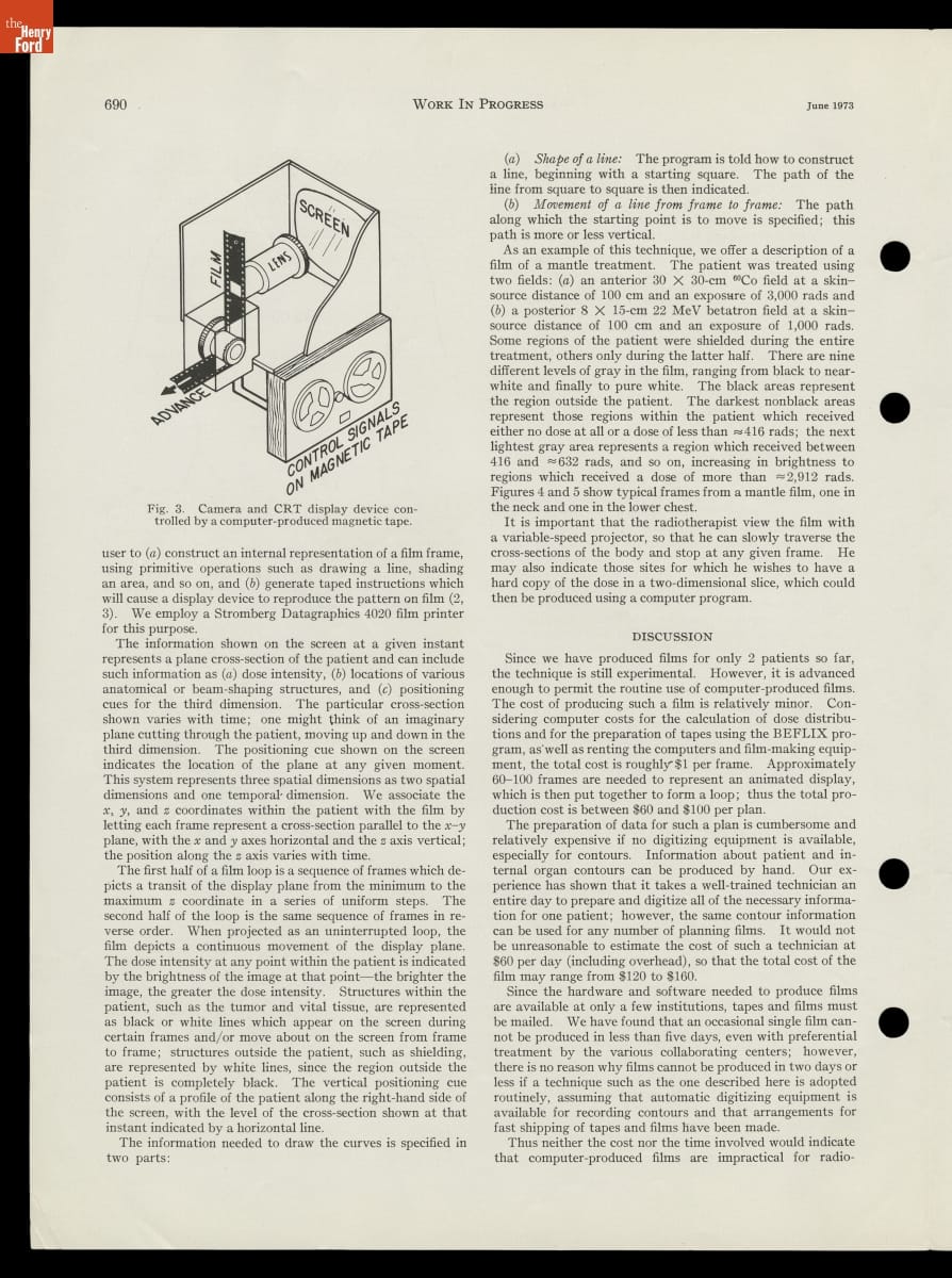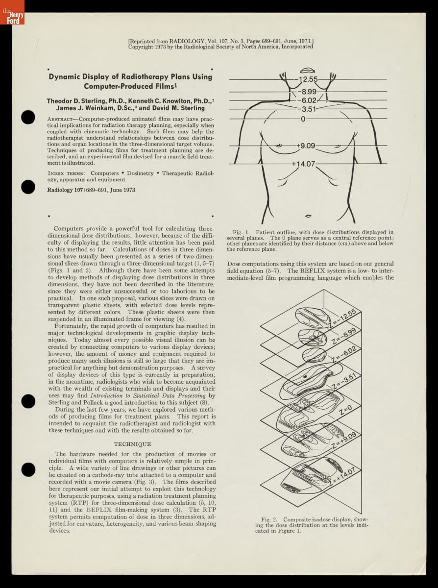 "Dynamic Display of Radiotherapy Plans Using Computer-Produced Films," Article Reprint from "Radiology," June 1973
