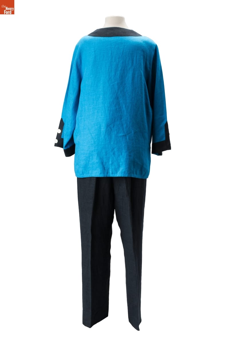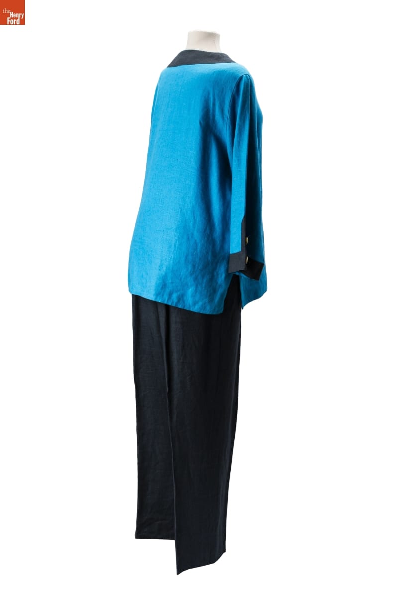New York designers Tom and Linda Platt believe great clothes should be simple. The couple's timeless designs -- with streamlined silhouettes, bold details, and daring colors -- transcend trends and fashion obsolescence and are at home in small-town America or cosmopolitan city. The Platts created this outfit for their client Winifred Jones Morsches, a wealthy woman from a small Indiana town.