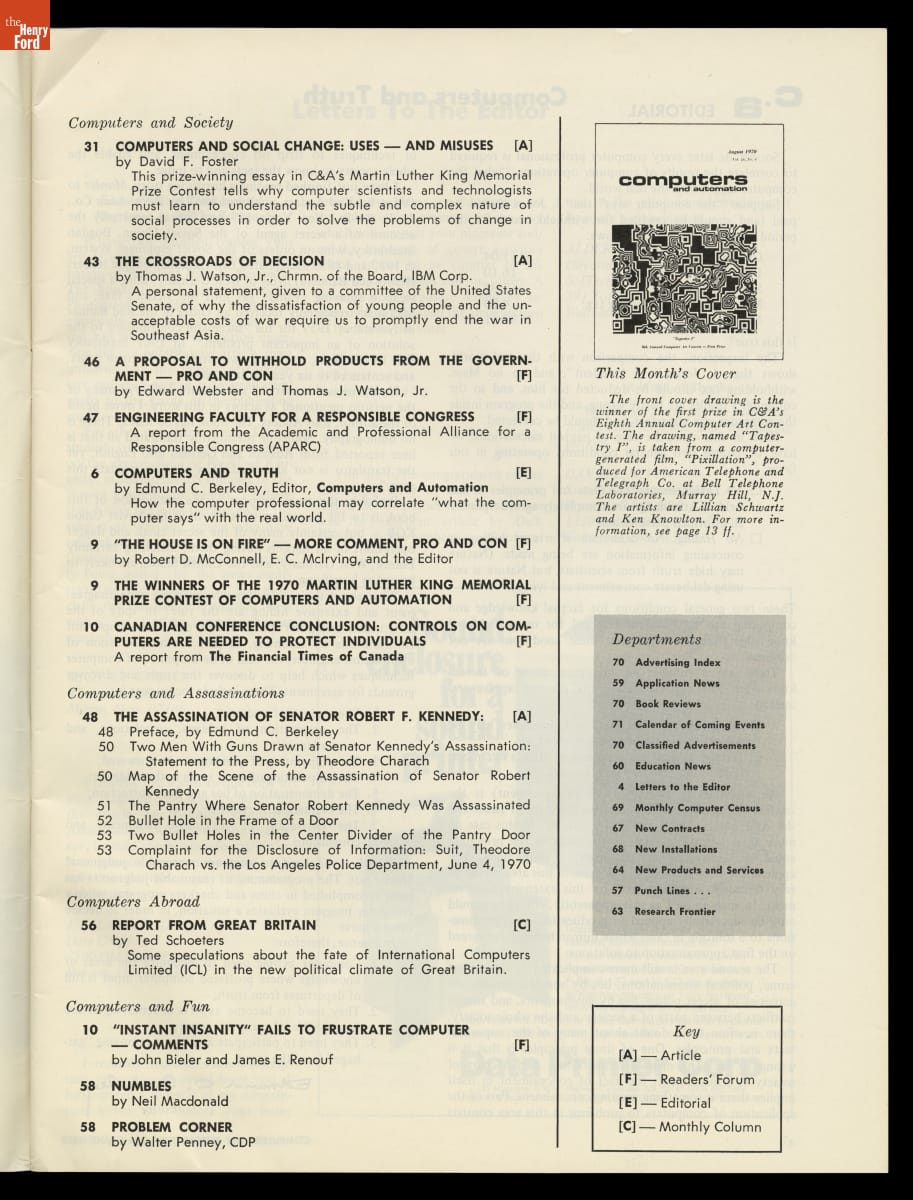 Computers and Automation, Vol. 19, No. 8, August 1970