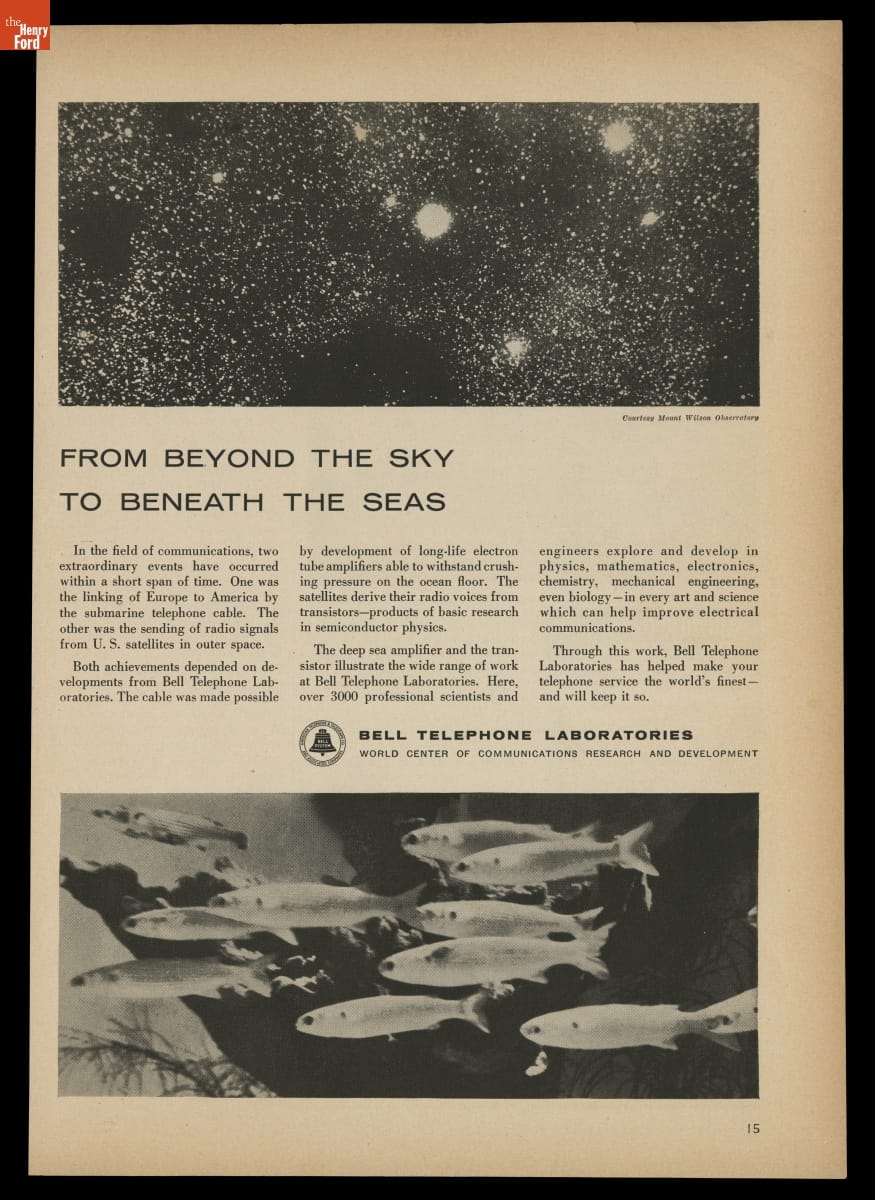"From Beyond the Sky to Beneath the Seas," Bell Telephone Laboratories Advertisement, 1958