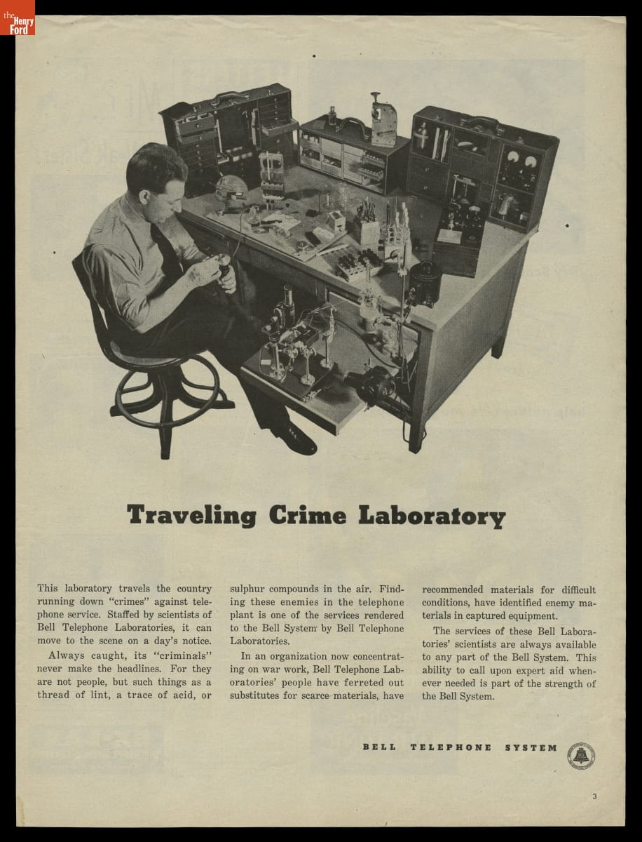 "Traveling Crime Laboratory," Bell Telephone System Advertisement, 1945