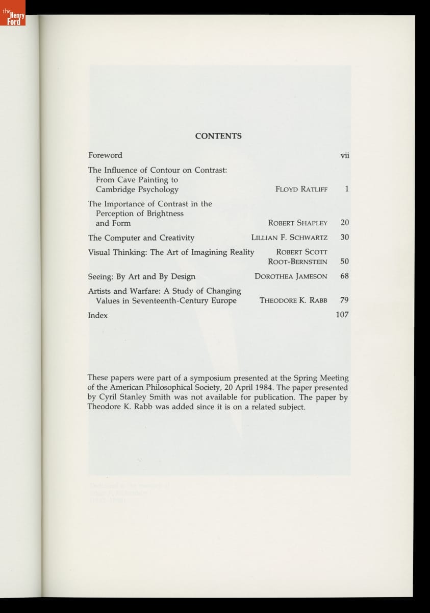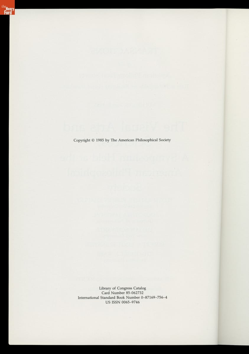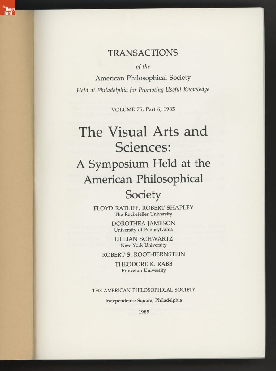 The Visual Arts and Sciences: A Symposium Held at the American Philosophical Society, 1985