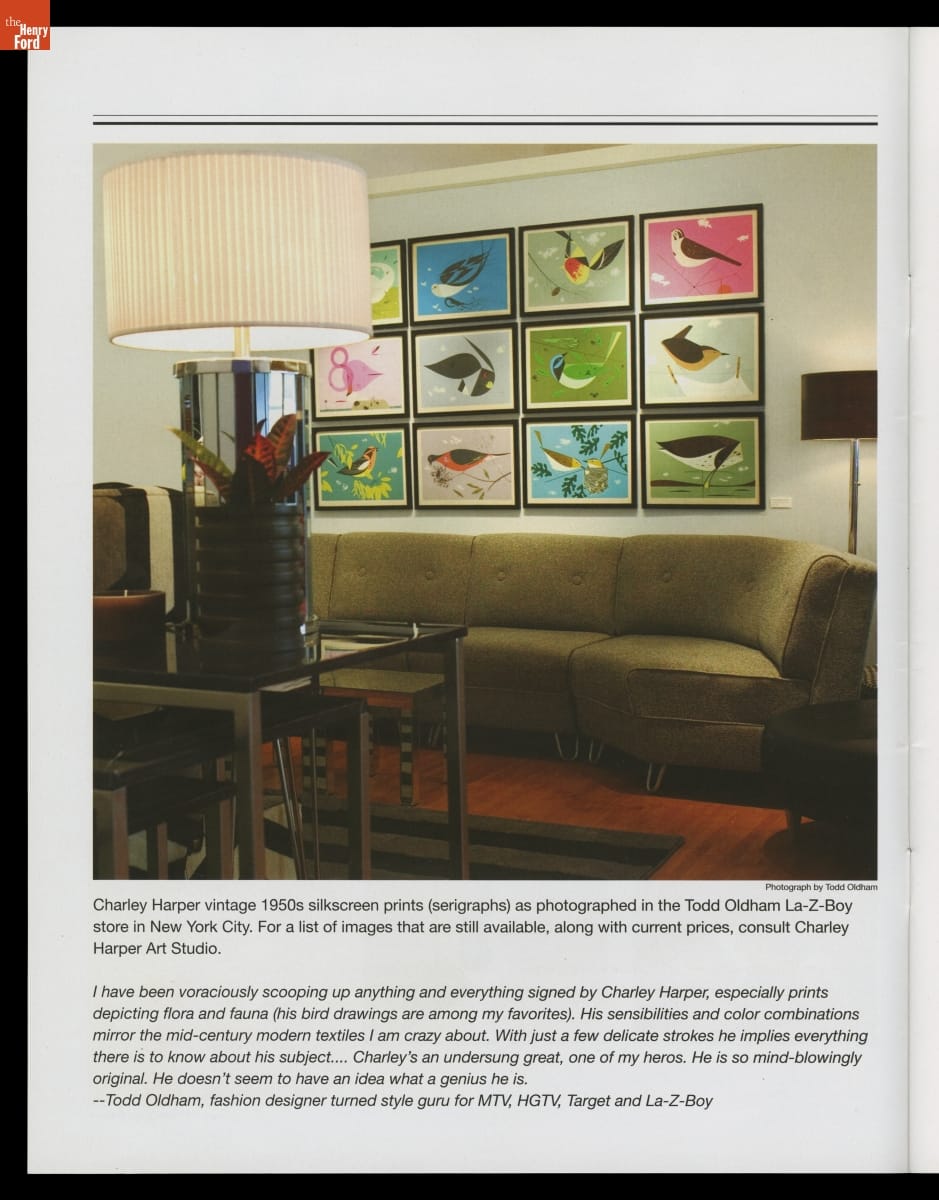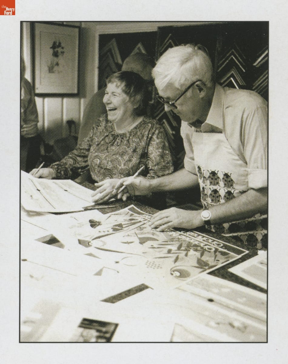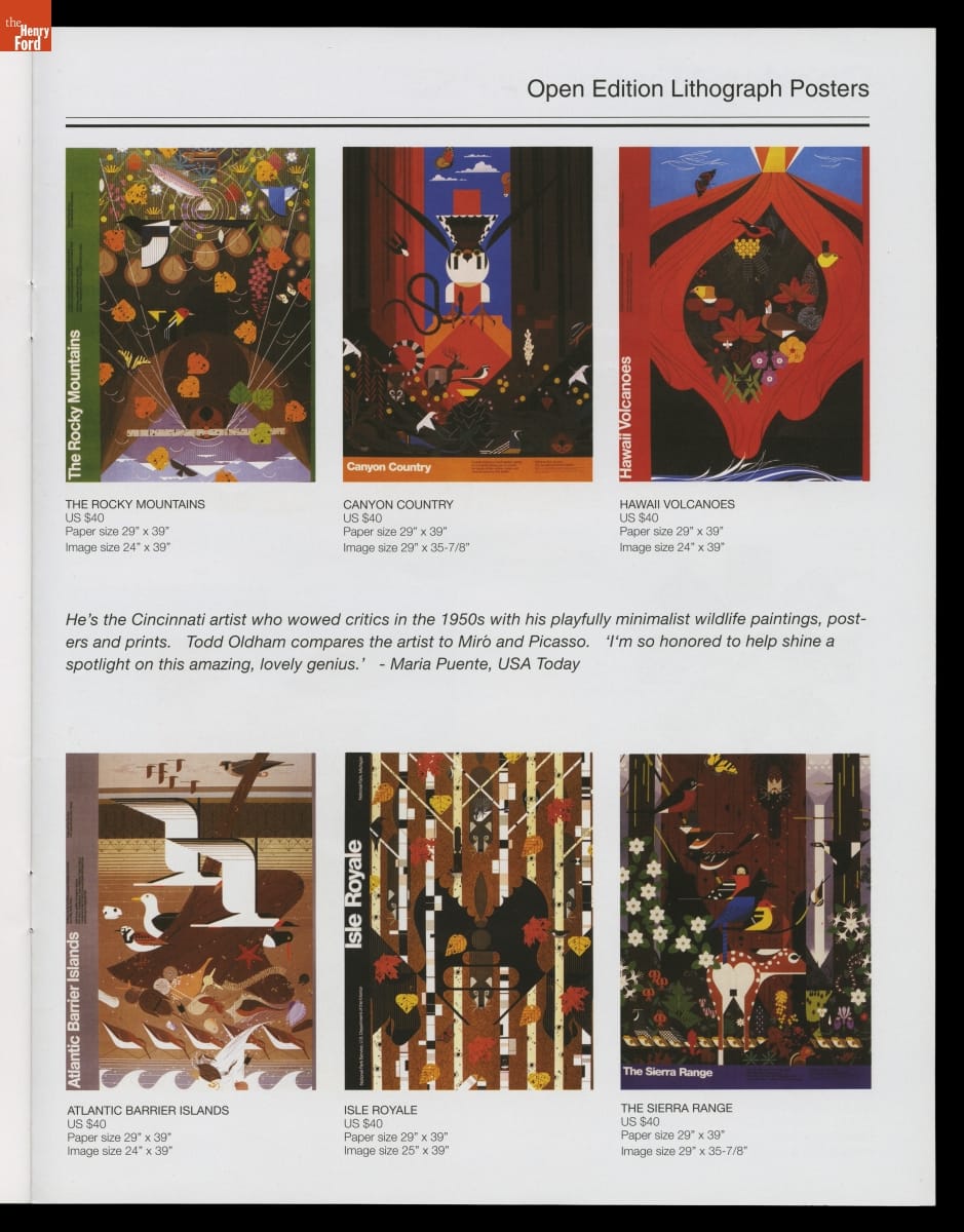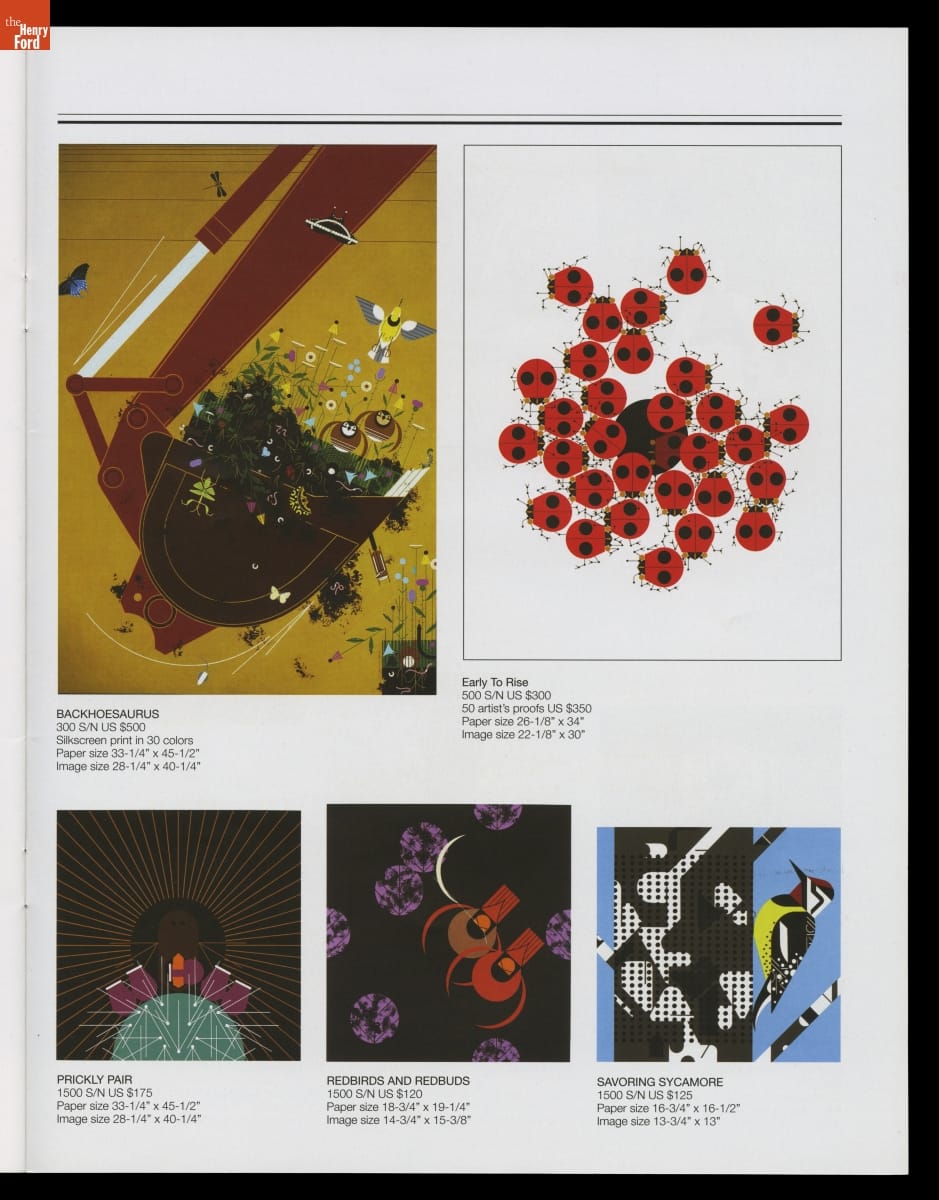 Charley Harper (1922-2007) and Edie McKee (1922-2010) met at the Art Academy of Cincinnati in 1940 and married in 1947. Both practiced art for the remainder of their lives, with Charley ultimately gaining fame for his unique style of illustrating wildlife. This trade catalog, published the year before Charley passed away, celebrated the Harpers' 60-year marriage and noteworthy careers.