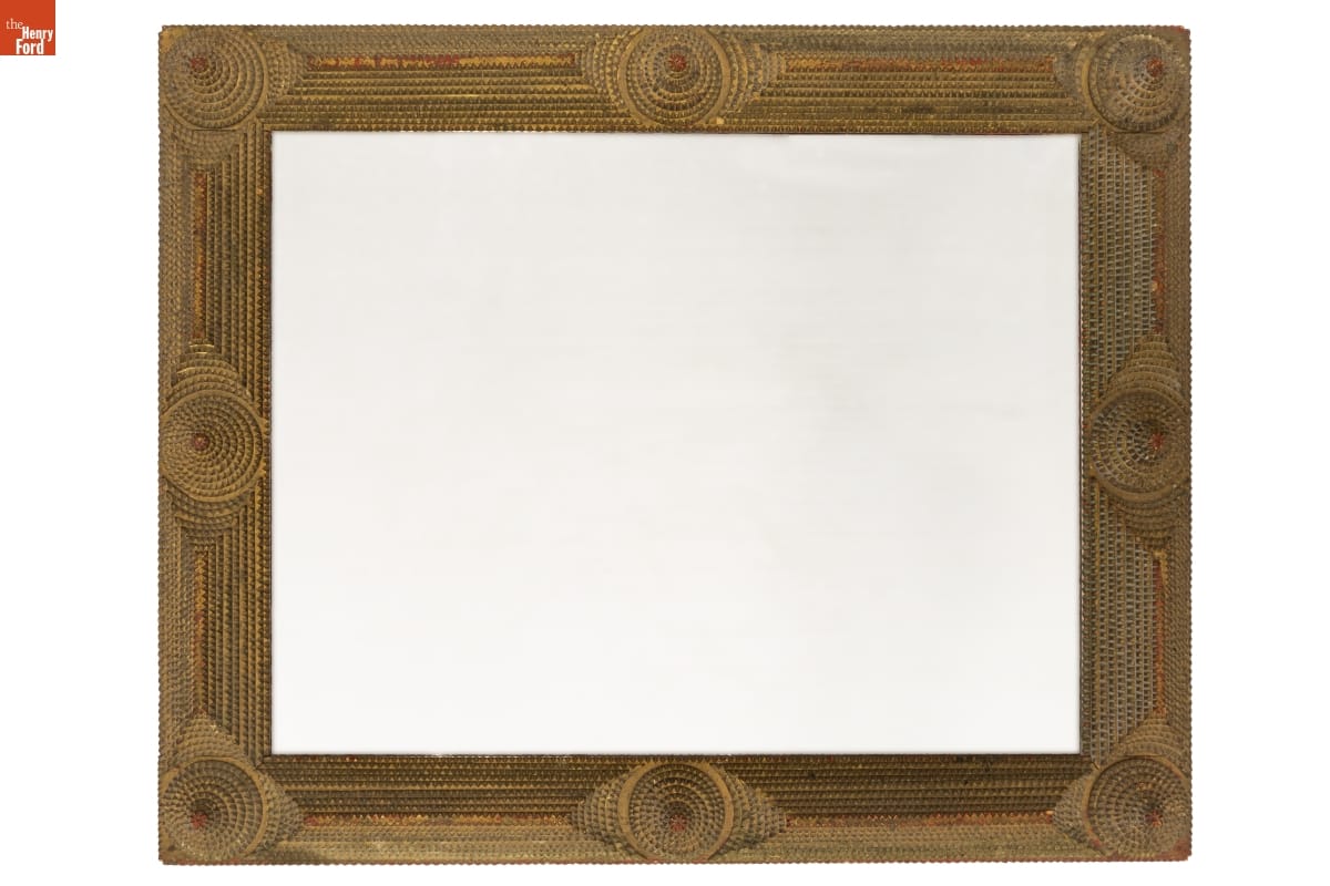 Tramp Art Frame with Modern MIrror Glass, 1929-1940
