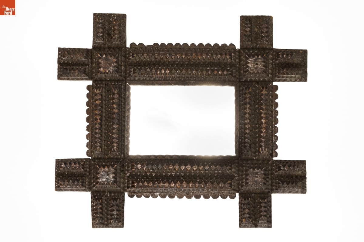 Tramp Art Frame with Modern MIrror Glass, 1929-1940