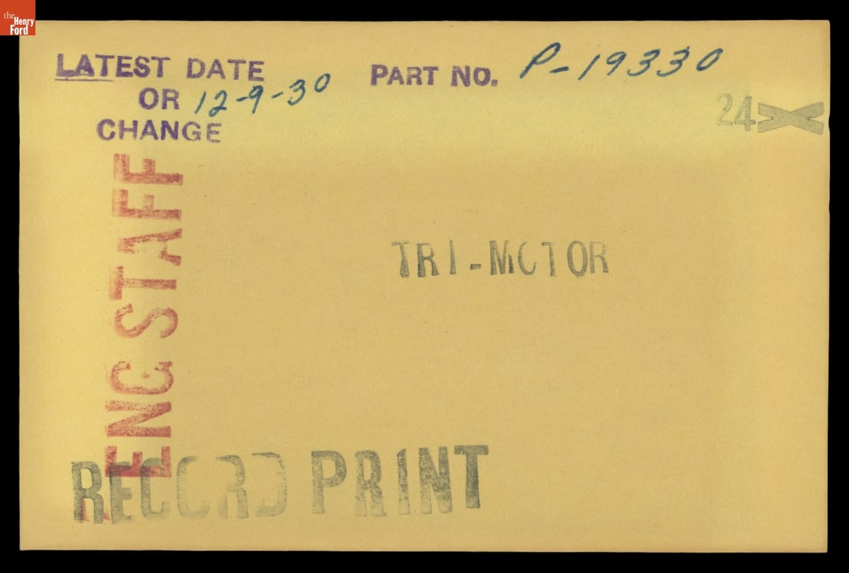 The Ford Motor Company created over a million parts drawings from 1903 to 1957. Many of these drawings specify engineering requirements for the components of Ford-made vehicles--including automobiles, trucks, tractors, military vehicles and Tri-motor airplanes. Others document assembly components, stages of casting and forging, or experimental designs. Beginning in the 1940s, Ford transferred the drawings to microfilm.