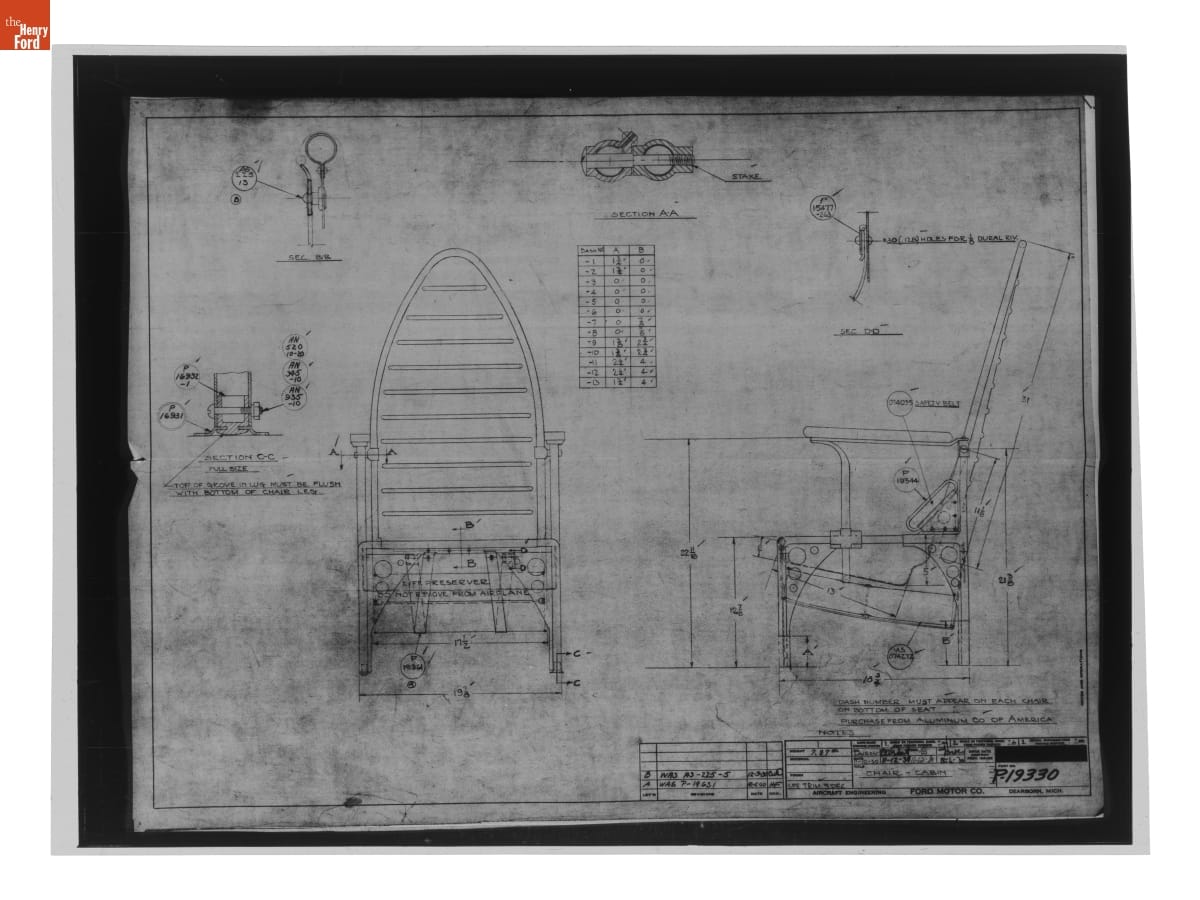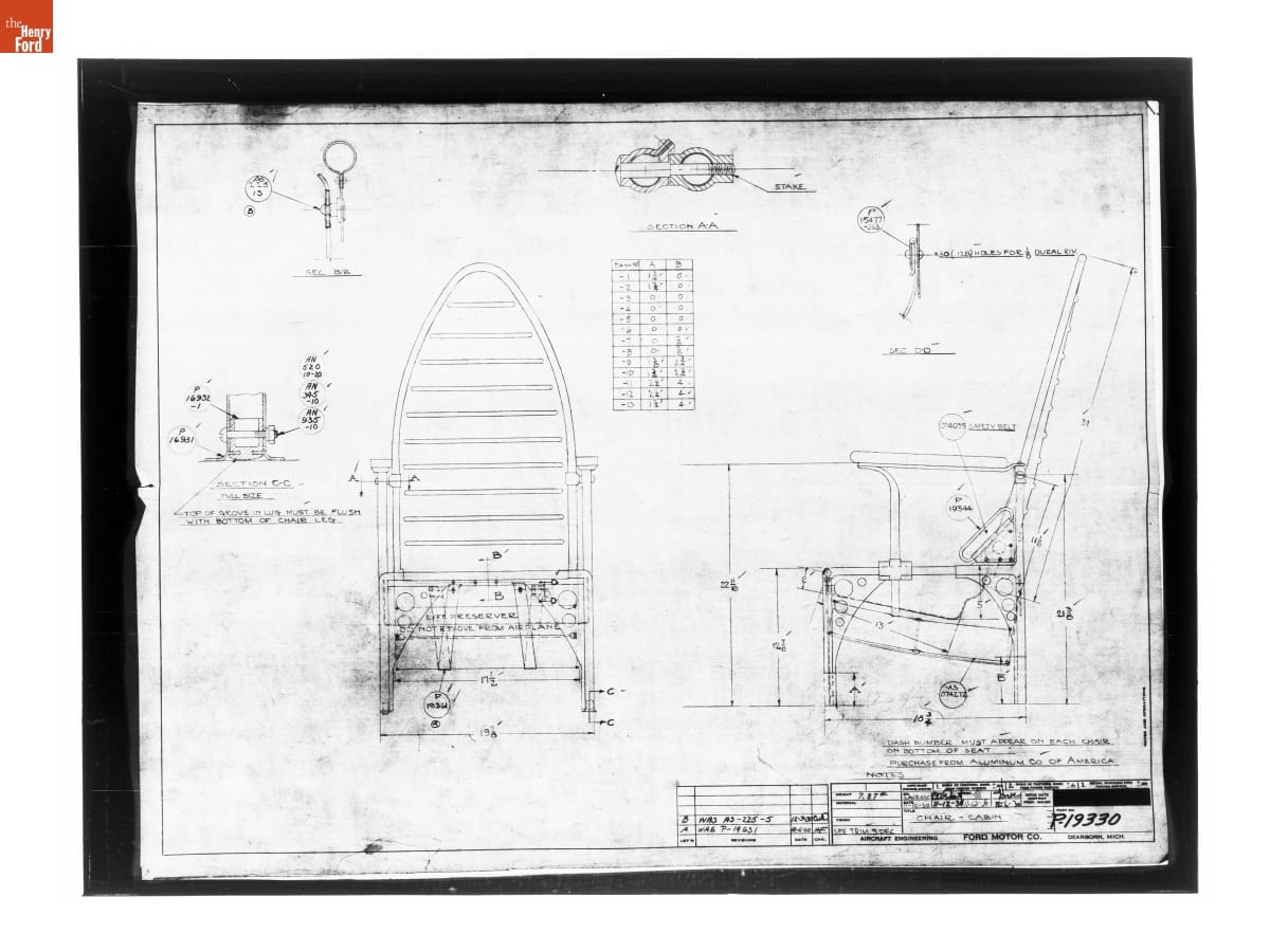 Drawing, "Chair - Cabin," Ford Tri-Motor (5-AT), December 9, 1930